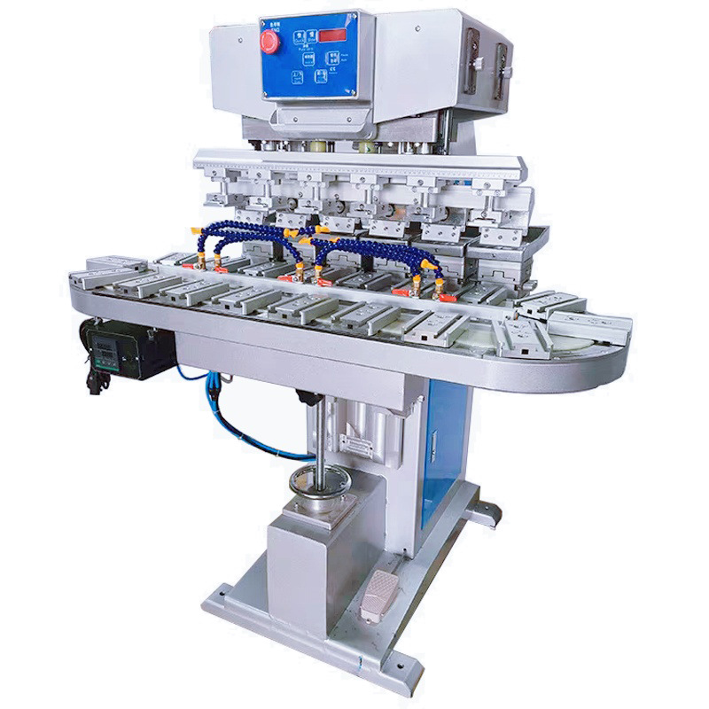 Шестицветная ротационная тампопечатьная машина Электронная пластиковая игрушка ЛОГОТИП полностью автоматическая пневматическая печатная машина Тампопечатьная машина на конвейерной ленте