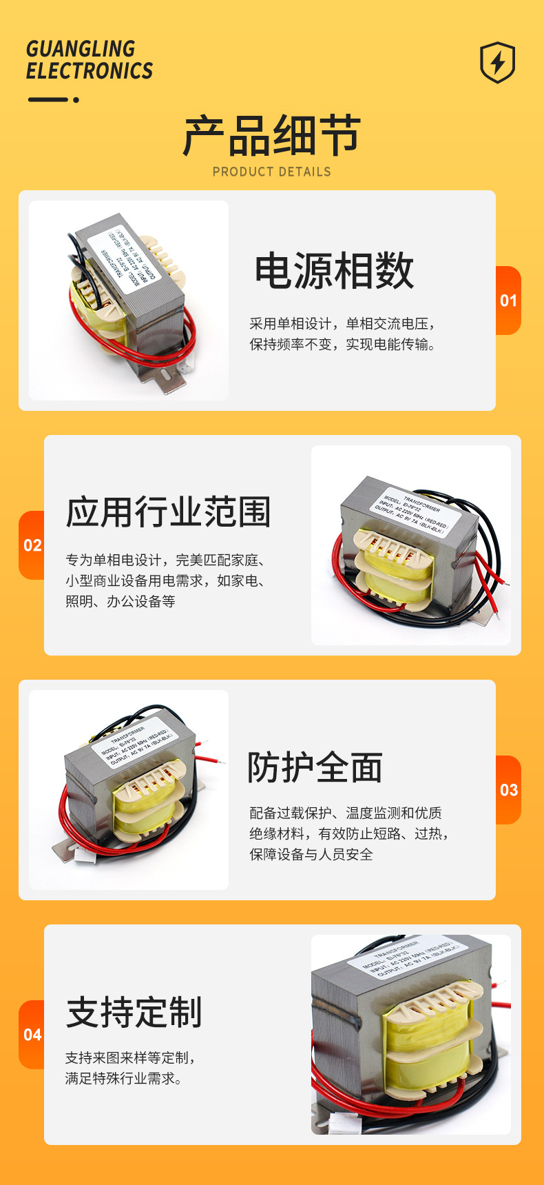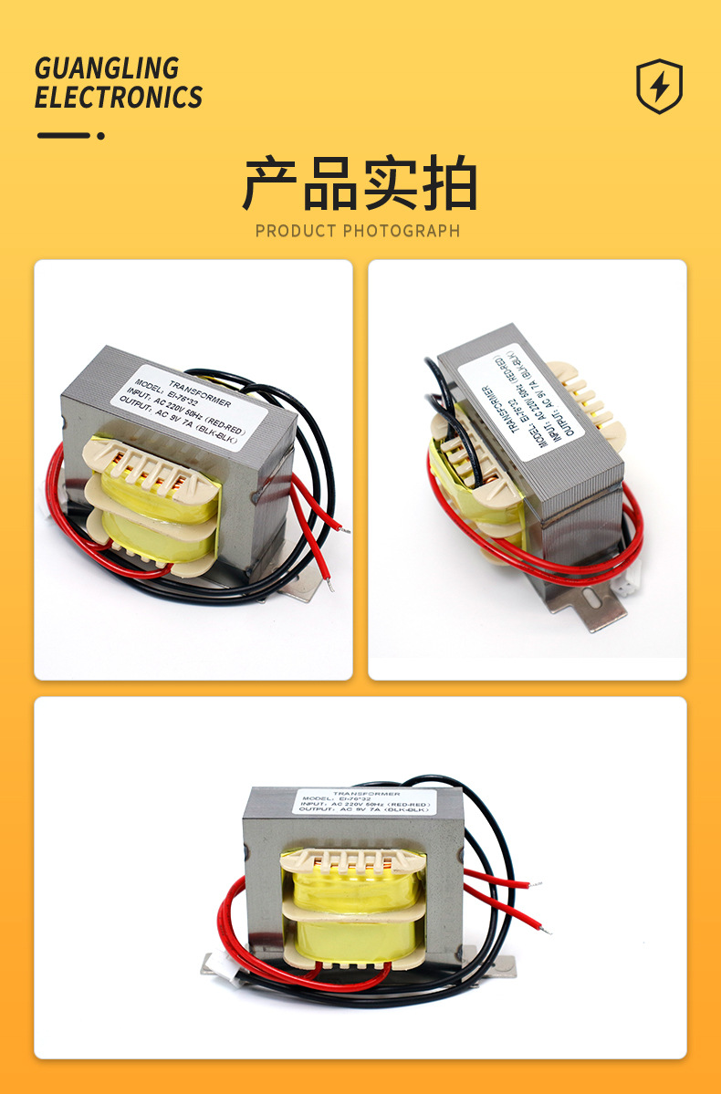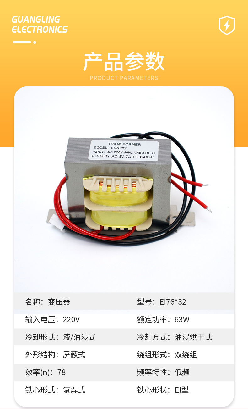 Индивидуальный силовой трансформатор EI76*32, 220В, низкочастотный, 9В 63Вт, маслонаполненный, сухого типа, частотный трансформатор типа EI