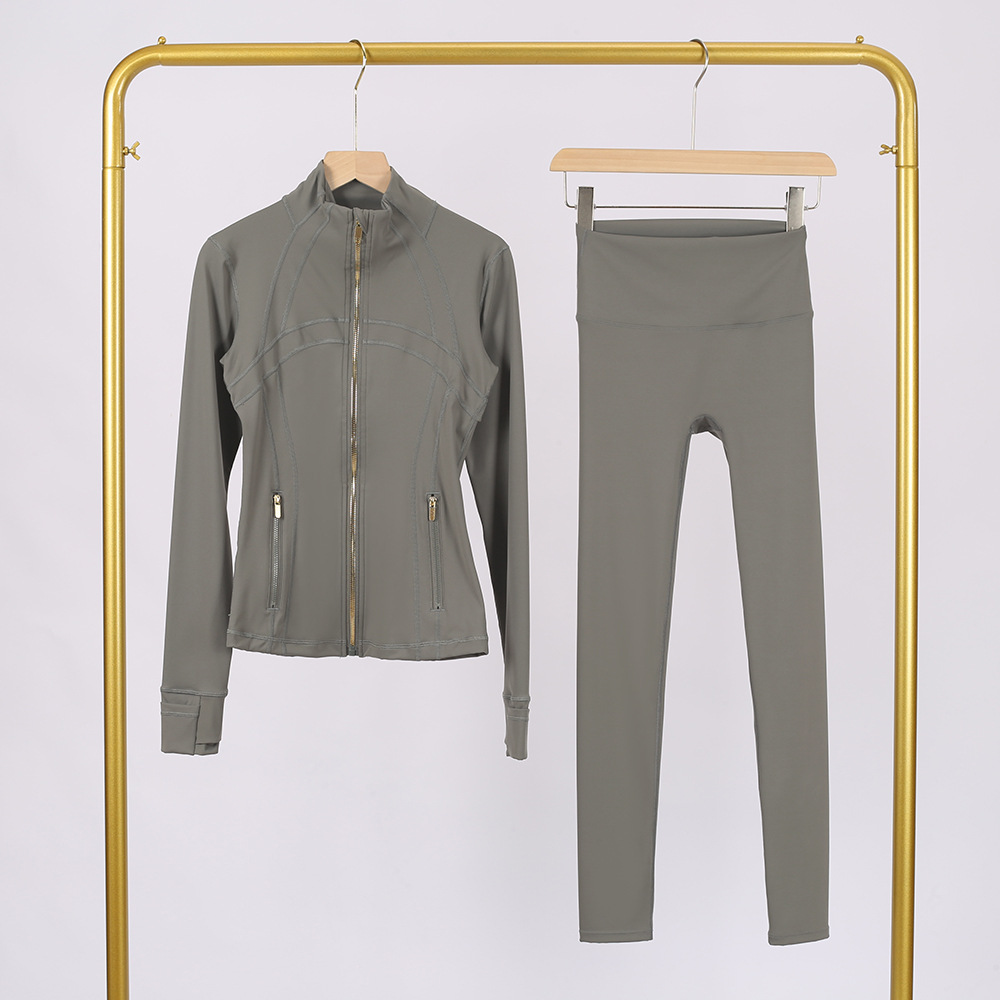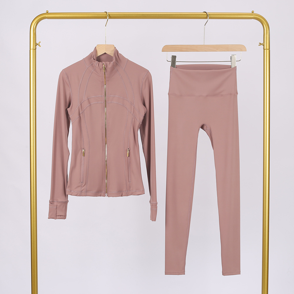 Комплект LULU DF: куртка с воротником-стойкой и укороченные брюки с золотой молнией, облегающий крой, эластичный, быстросохнущий, для фитнеса и йоги