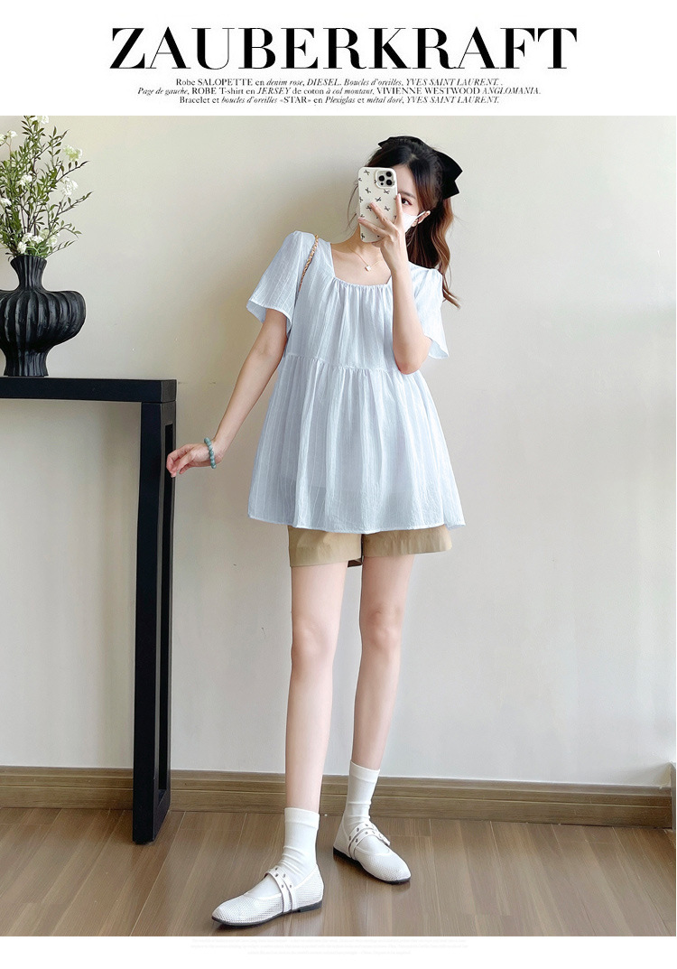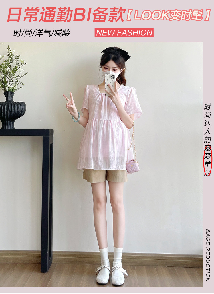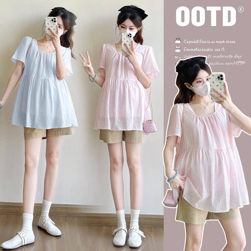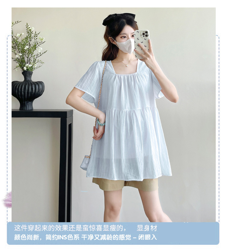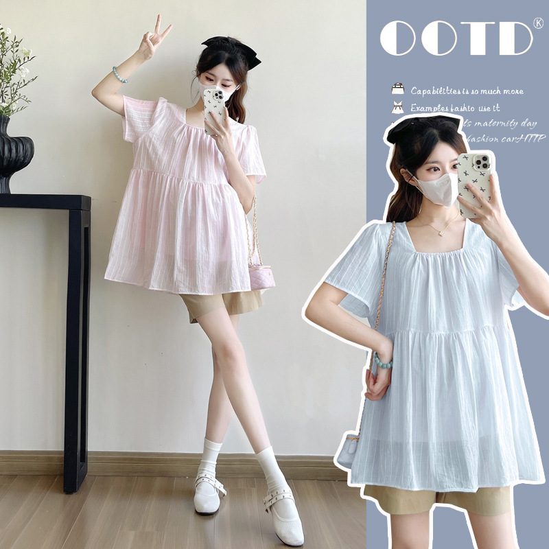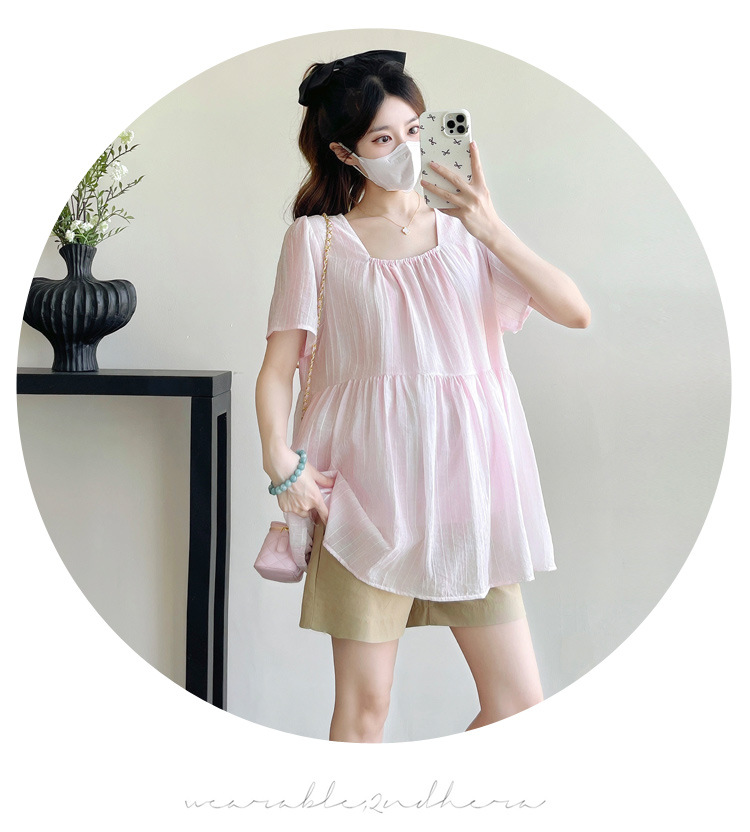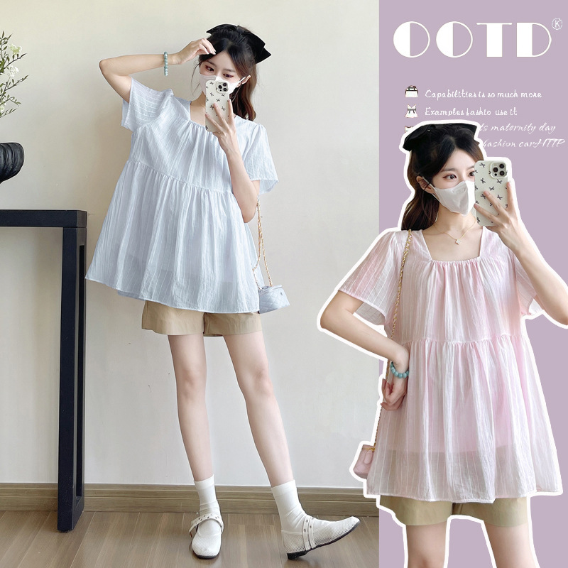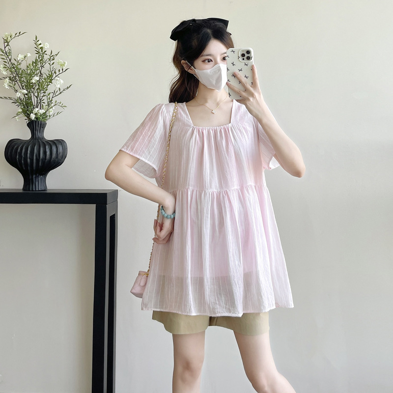 Одежда для беременных, новая летняя модная свободная и универсальная рубашка с короткими рукавами и квадратным воротником, корейская версия, милая и тонкая модная рубашка для мамы
