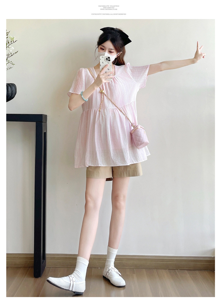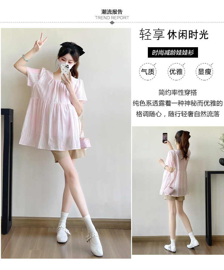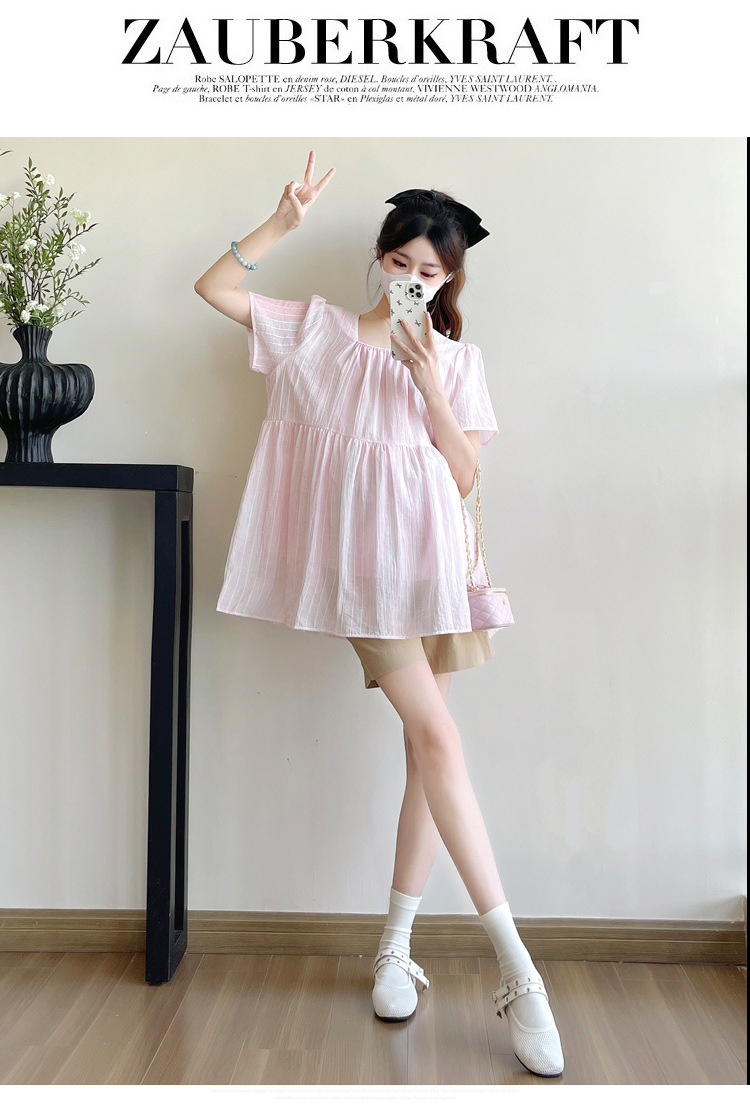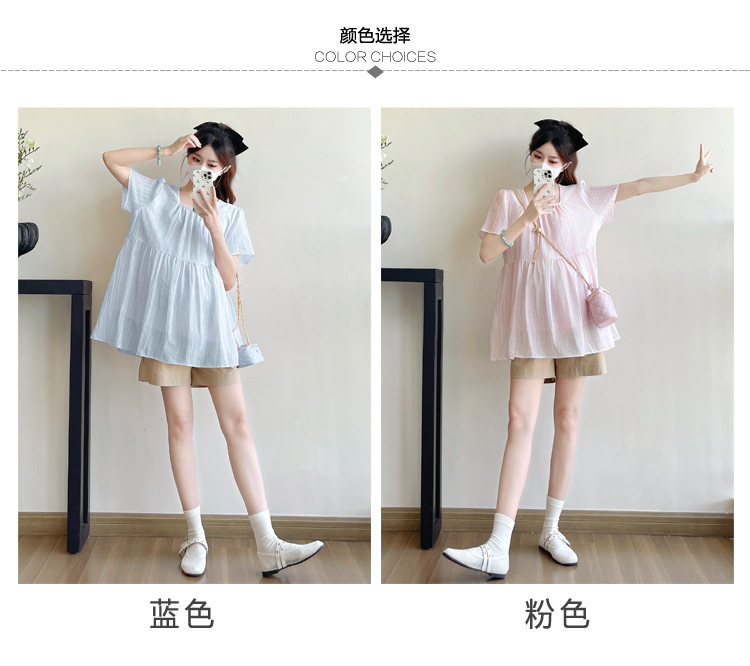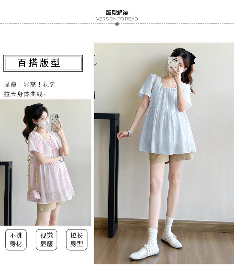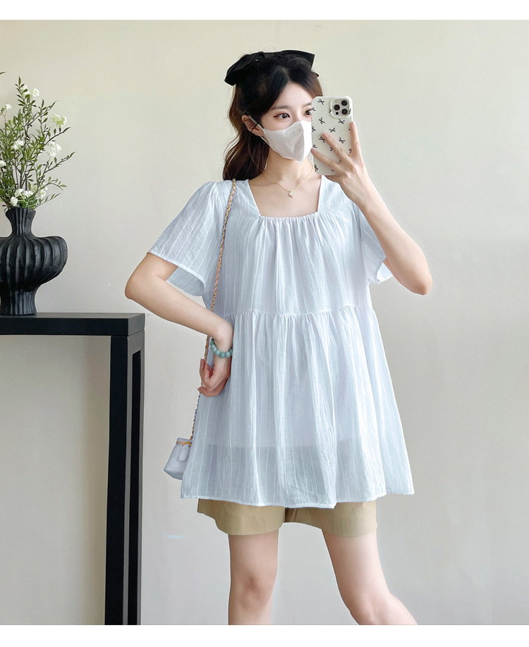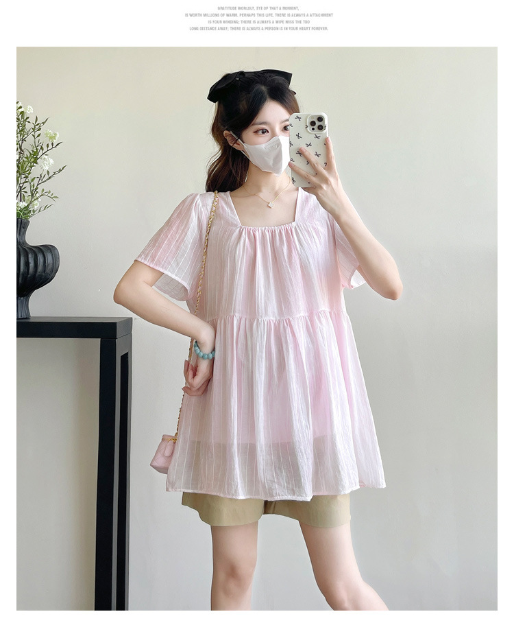 Одежда для беременных, новая летняя модная свободная и универсальная рубашка с короткими рукавами и квадратным воротником, корейская версия, милая и тонкая модная рубашка для мамы