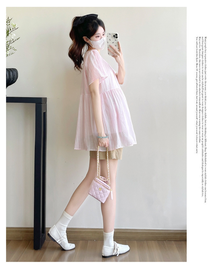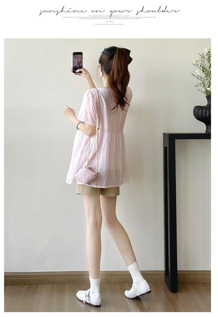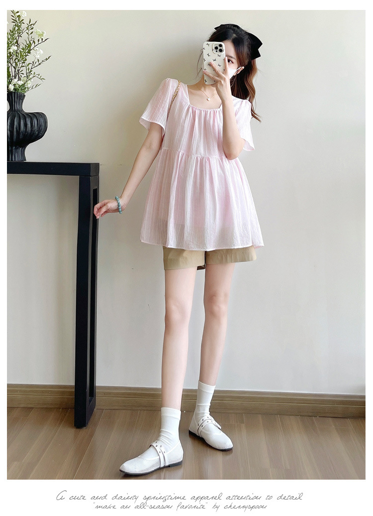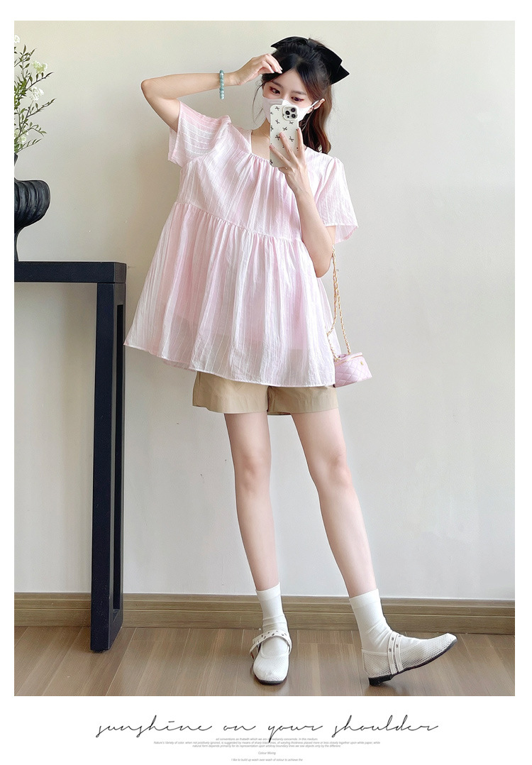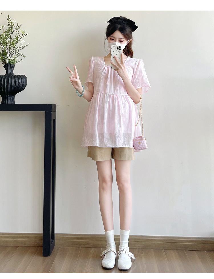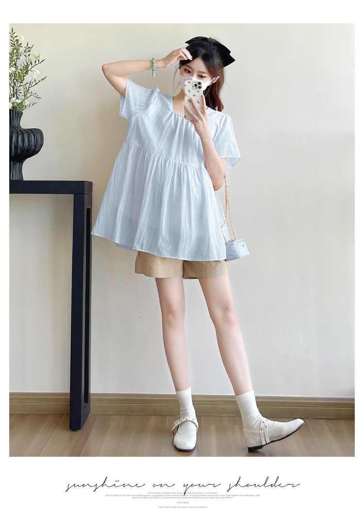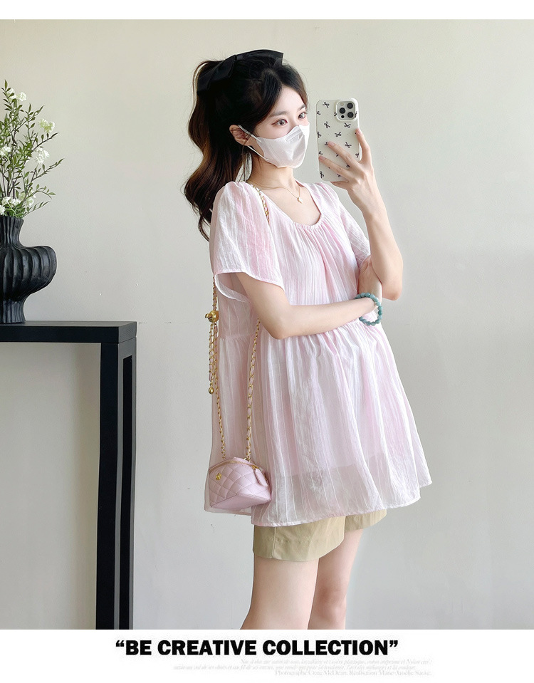 Одежда для беременных, новая летняя модная свободная и универсальная рубашка с короткими рукавами и квадратным воротником, корейская версия, милая и тонкая модная рубашка для мамы