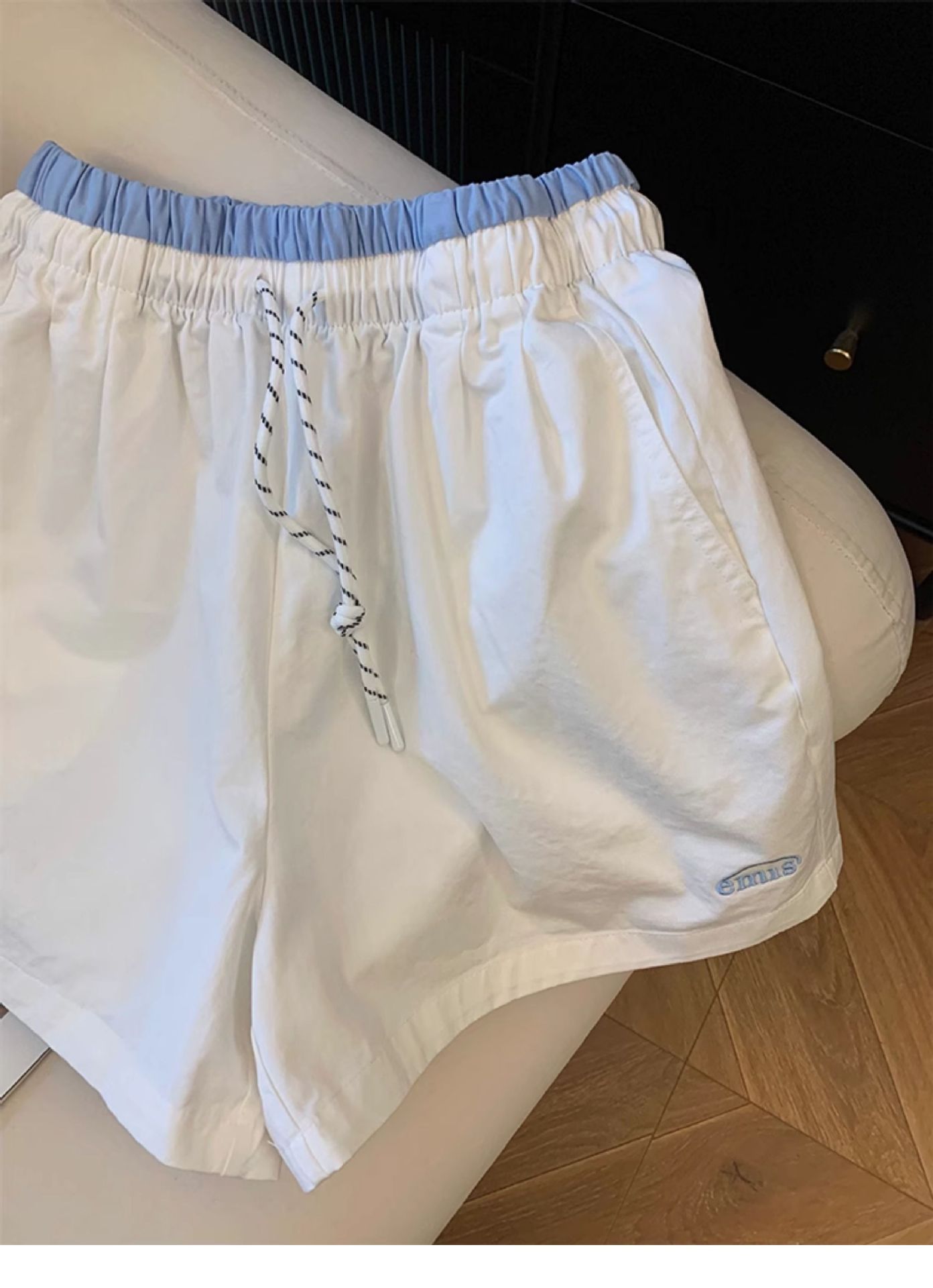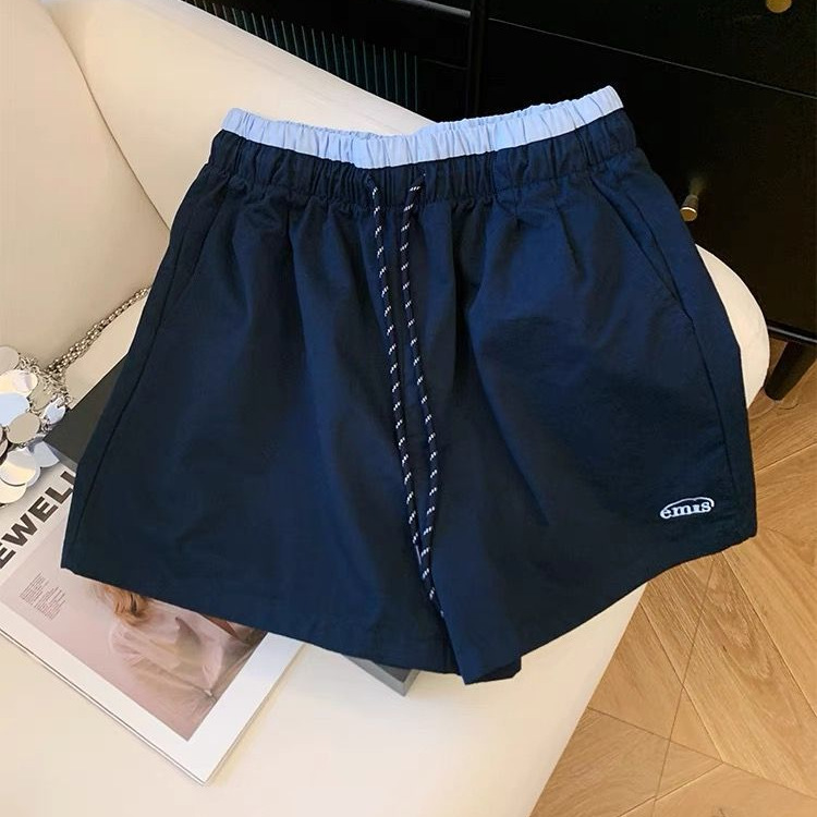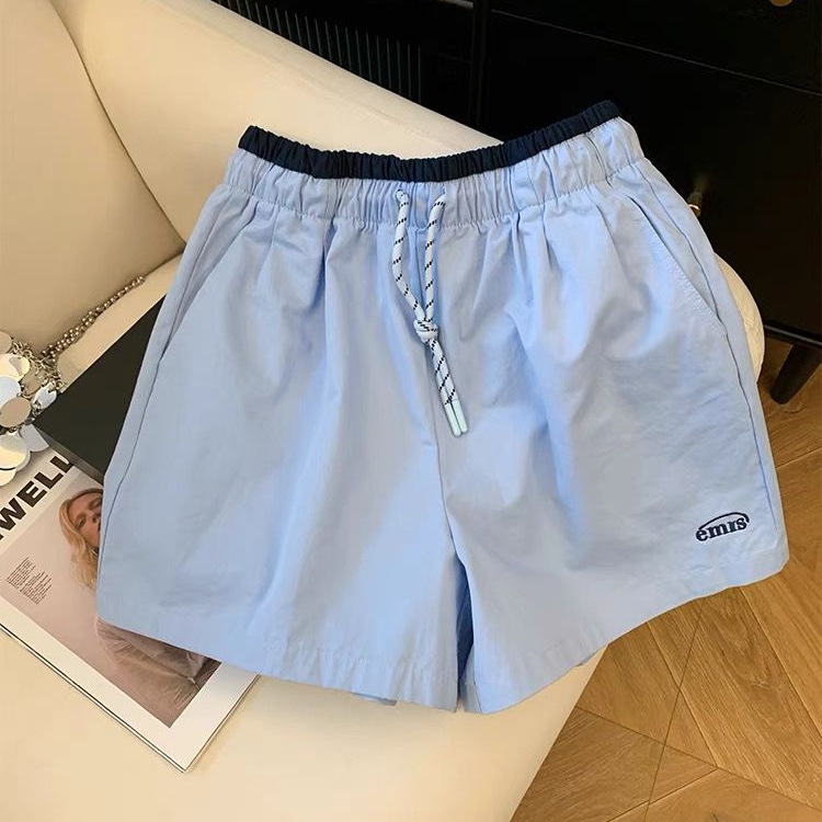 Женские спортивные шорты с вышивкой на шнурке, летний тонкий стиль, миниатюрные, с высокой талией, утягивающие широкие шорты А-силуэта, шорты до колена.