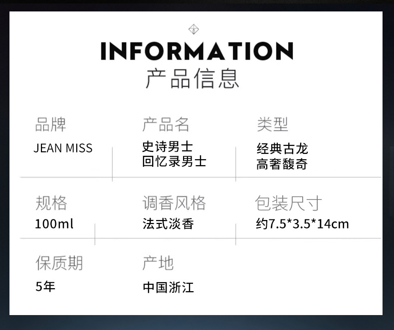 SLN-F50006 Epic Men's Perfume 100ML SLN-F10007 Memoirs Men's Perfume 100ML Мемуары Мужской парфюм 100 мл