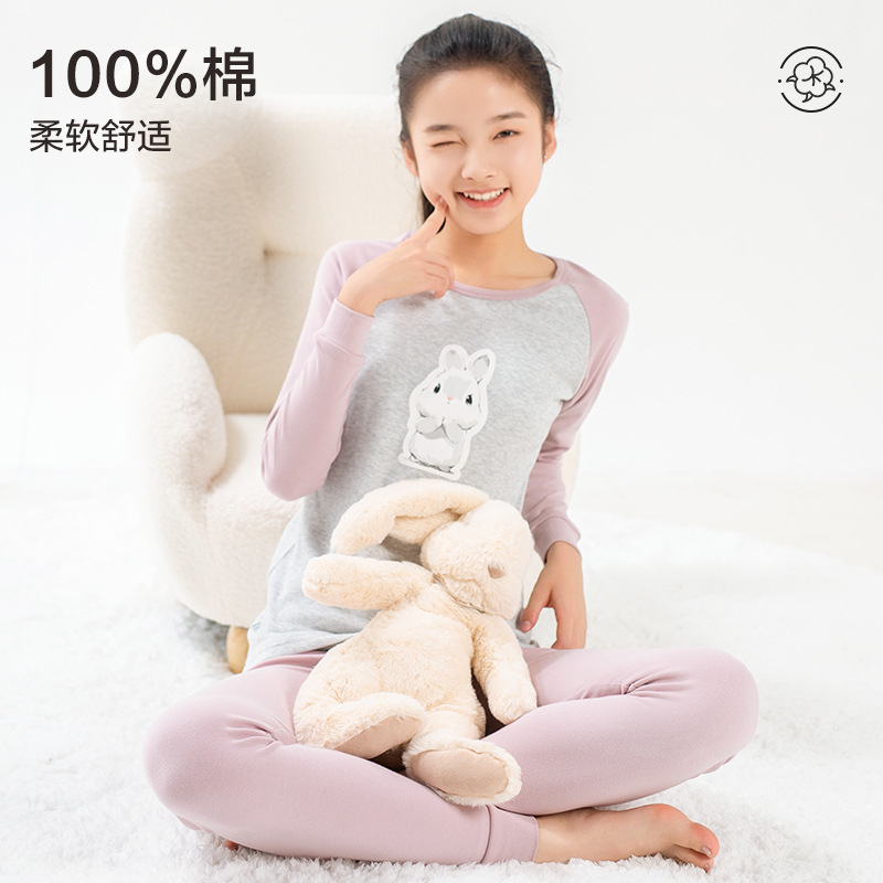 Осенний комплект одежды для девочек, чистый хлопок, для подростков, учащихся средних и старших классов, полностью хлопковая термоодежда.