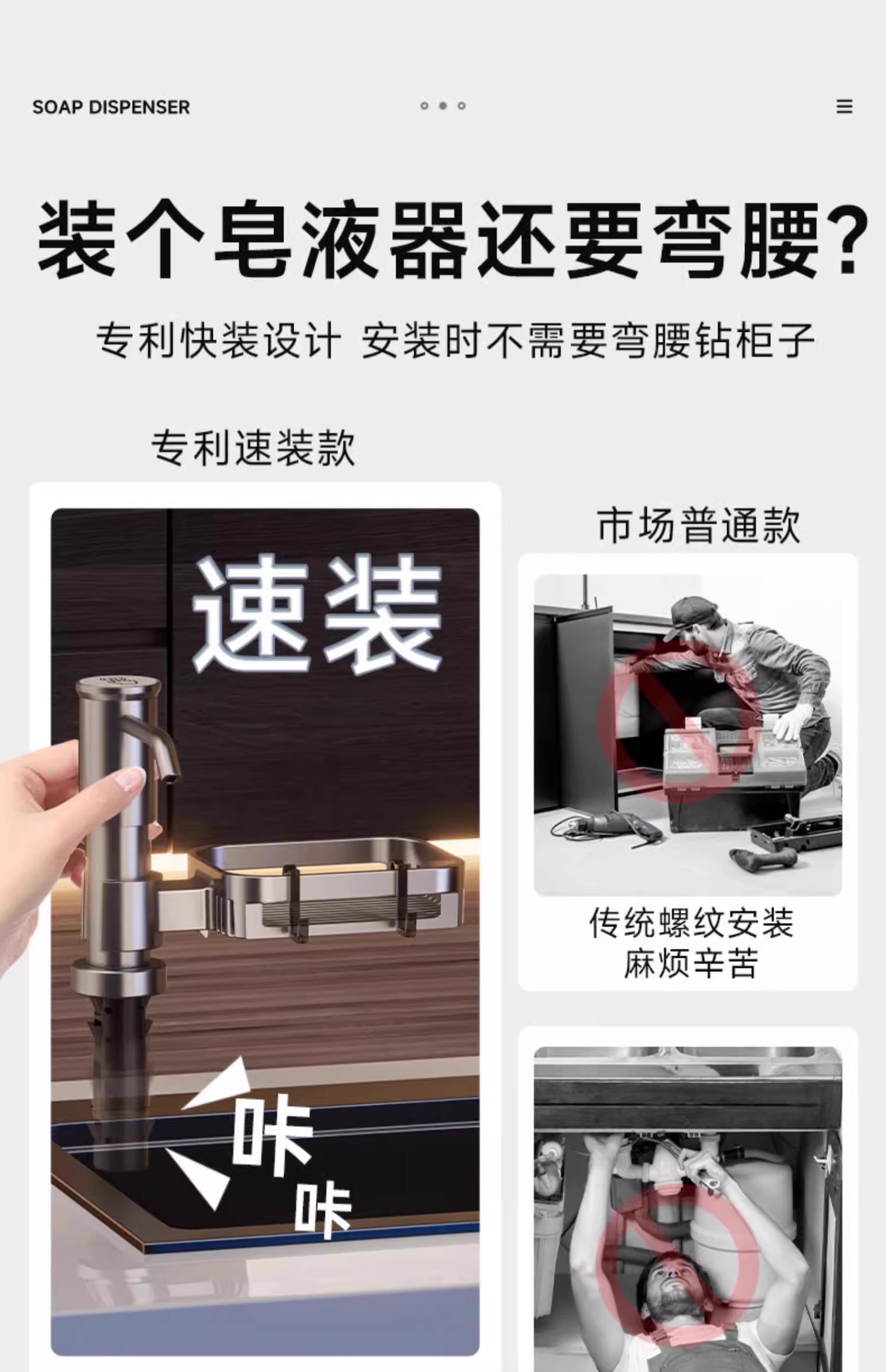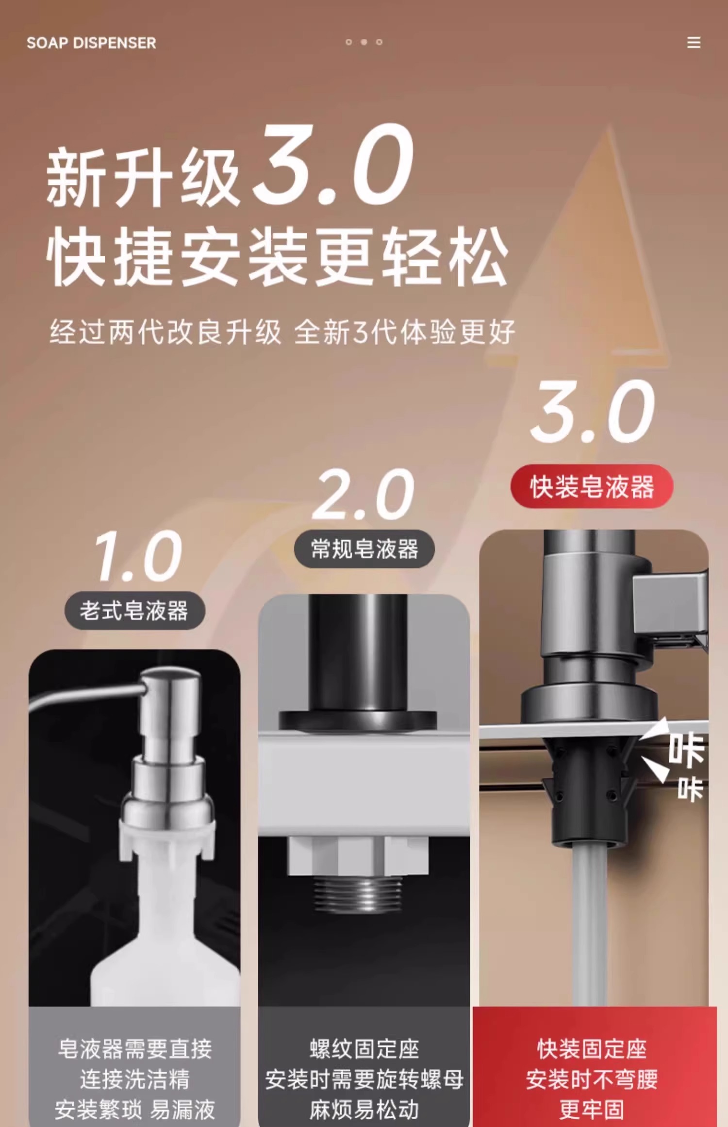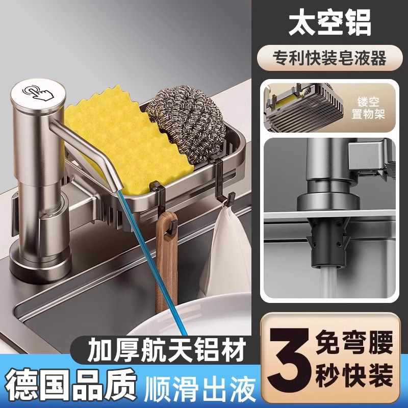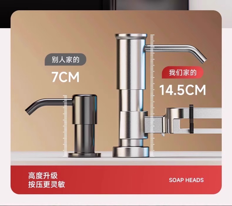 ✅ Дозатор для моющего средства для кухонной мойки, пресс для мыла с приподнятой головкой насоса, пространство из нержавеющей стали, алюминиевый дозатор для мыла с быстрой установкой.