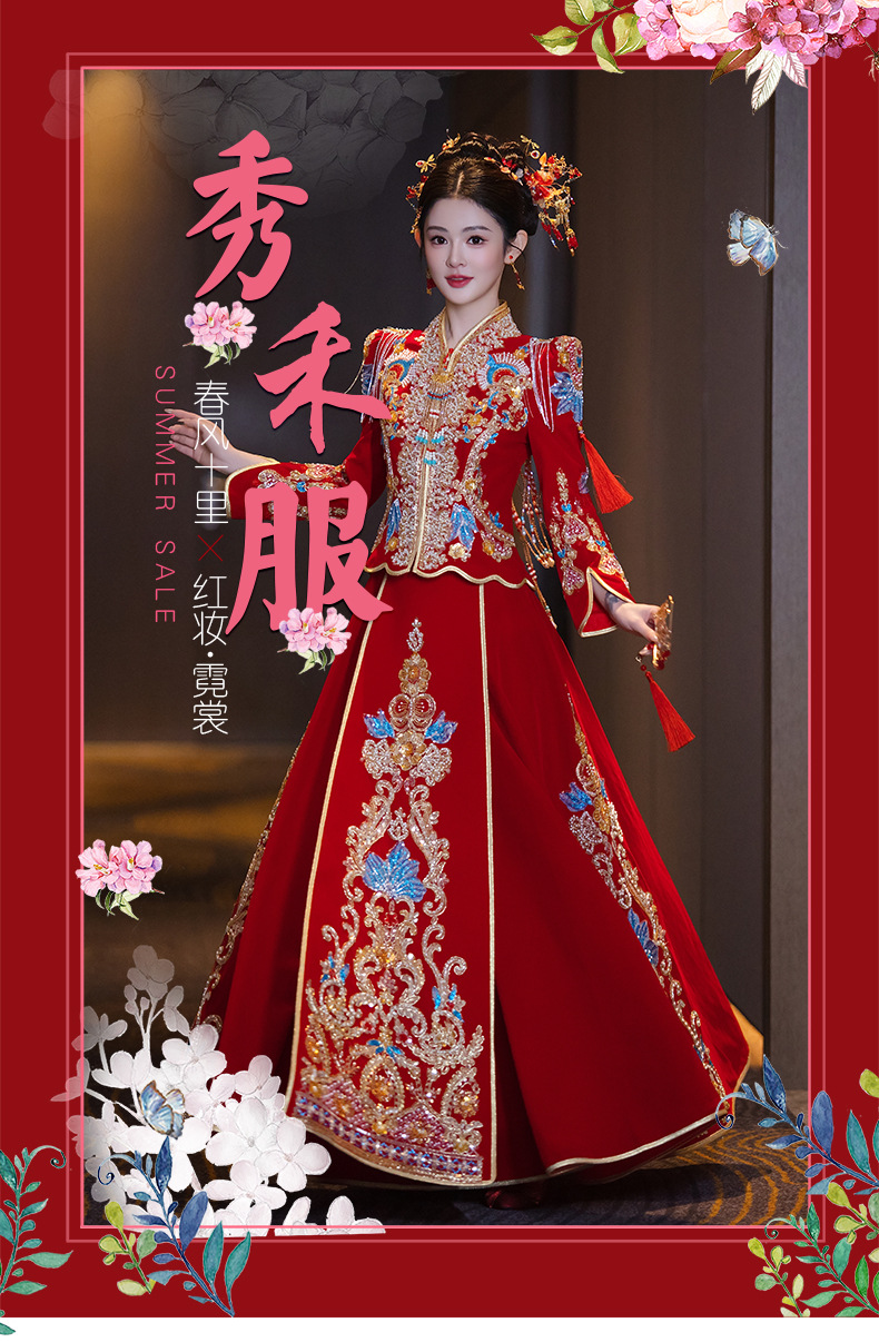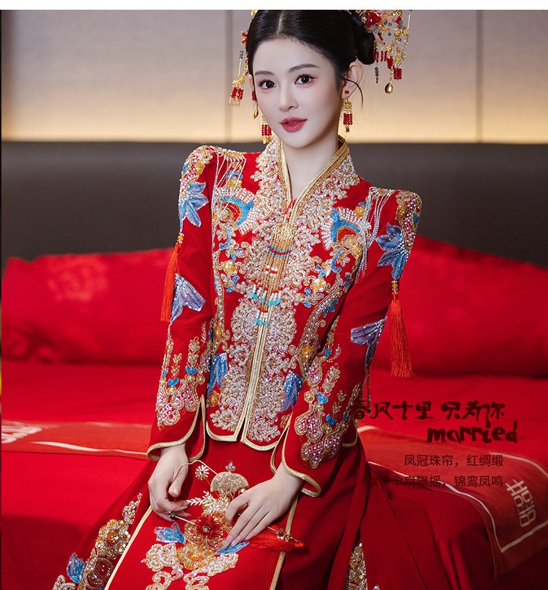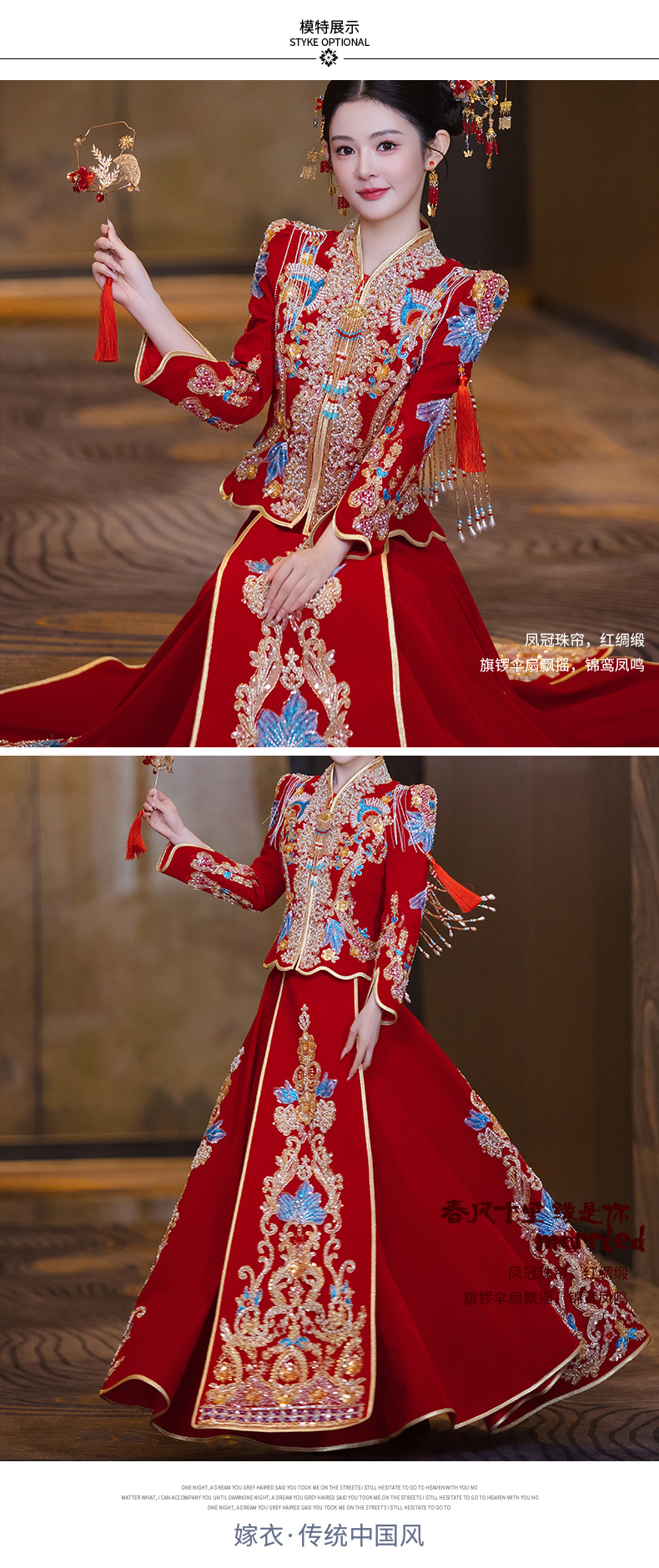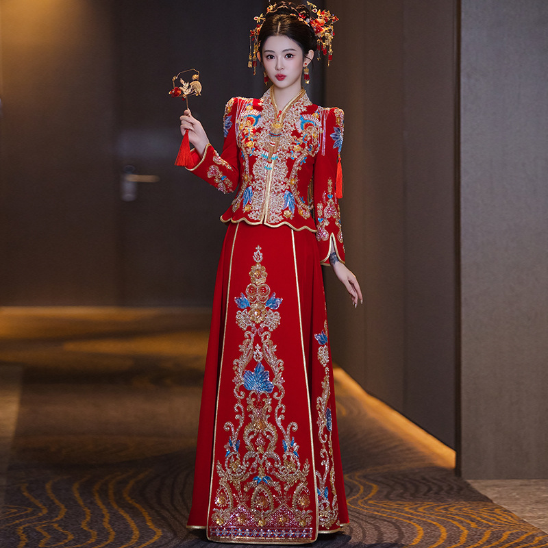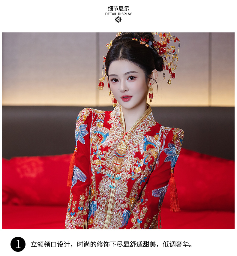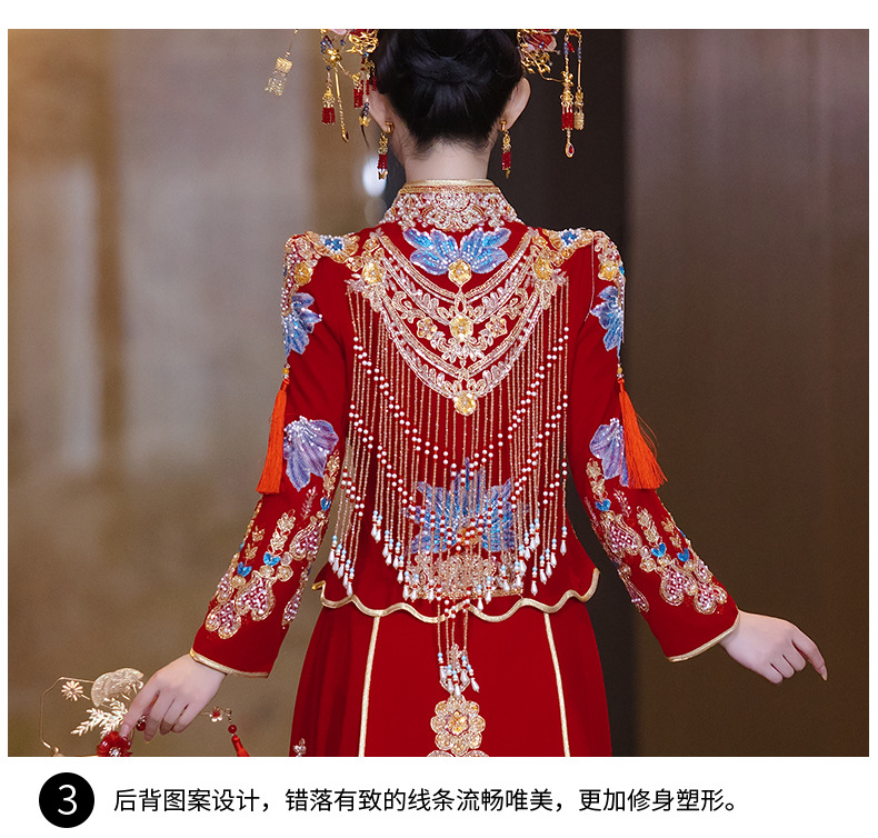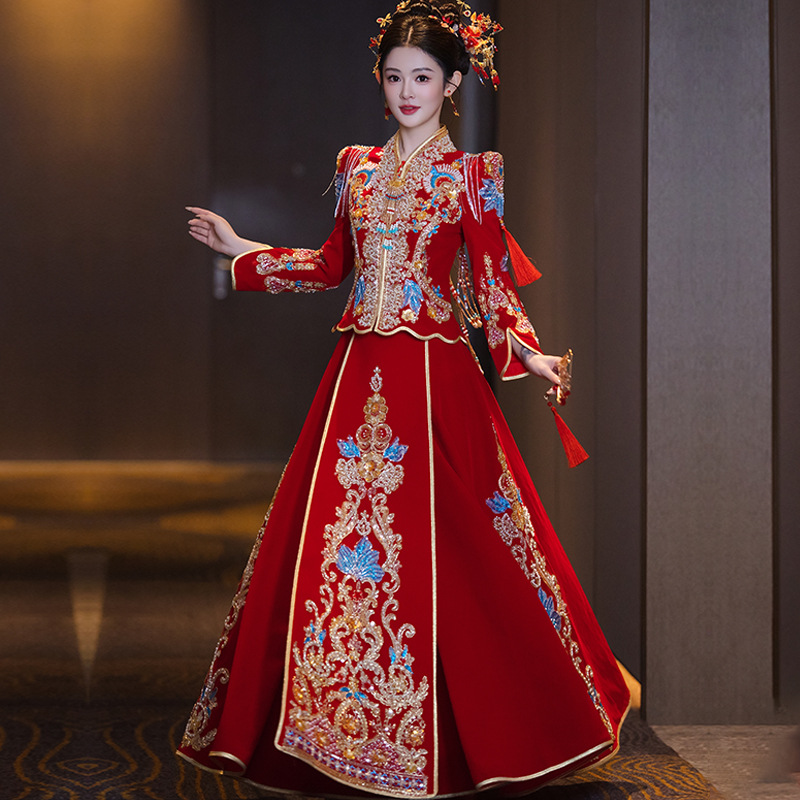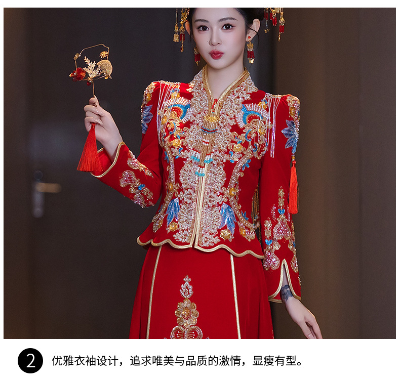 Бархатный костюм Xiuhe для невесты, новинка 2025 года, свадебное платье в китайском стиле, роскошный свадебный новый стиль, бархатный костюм Xiuhe.