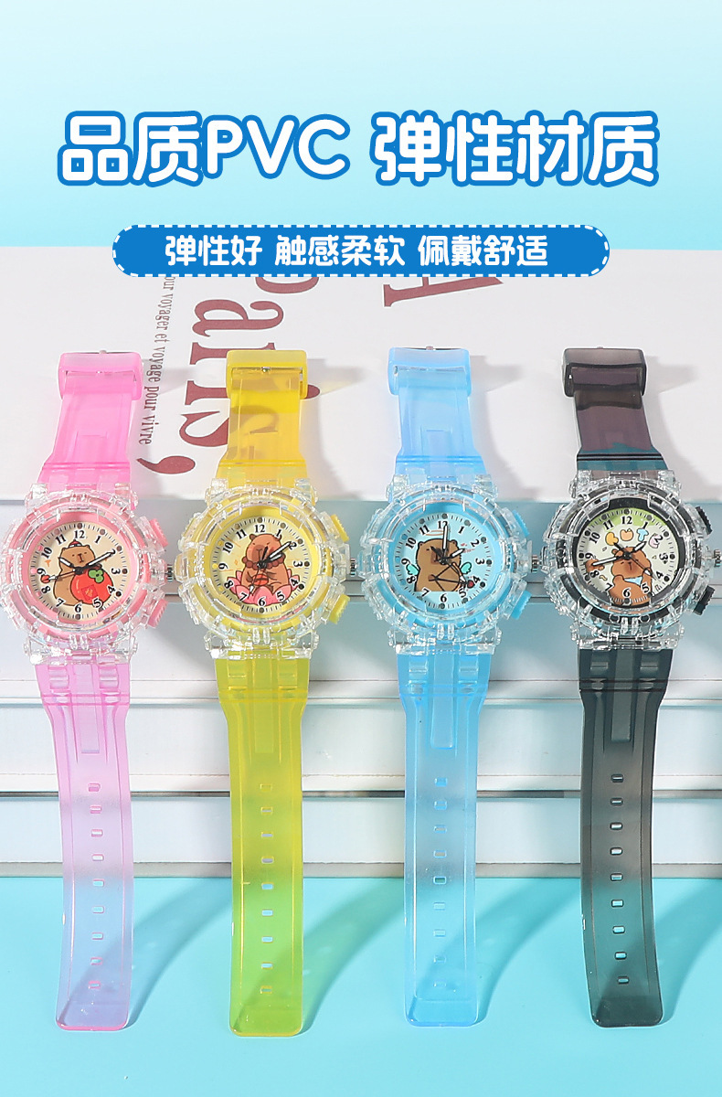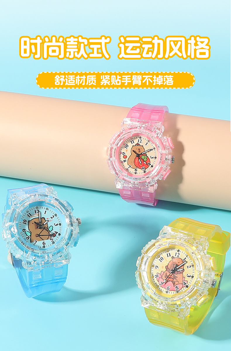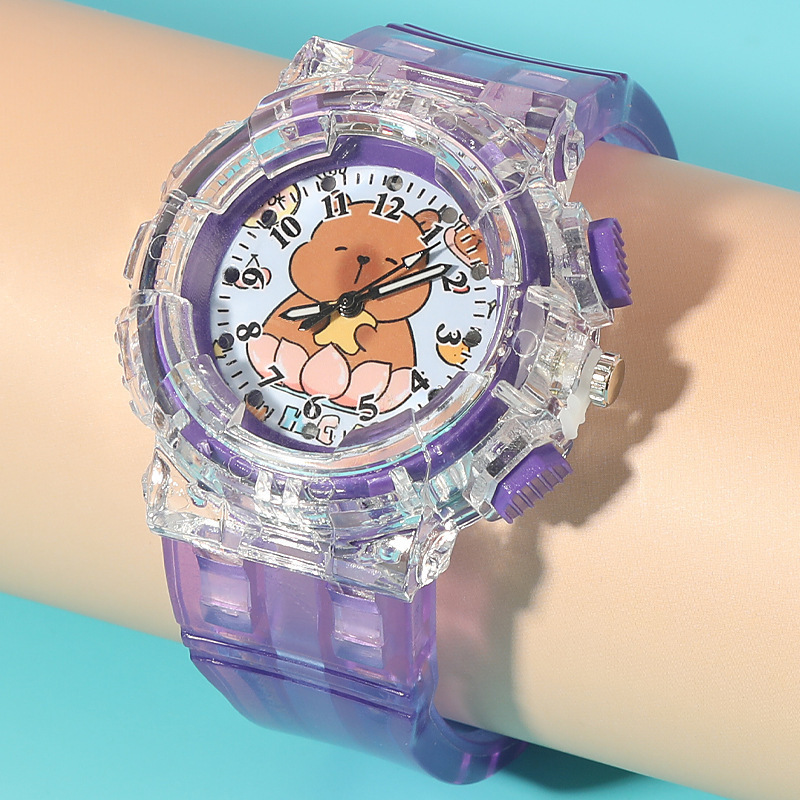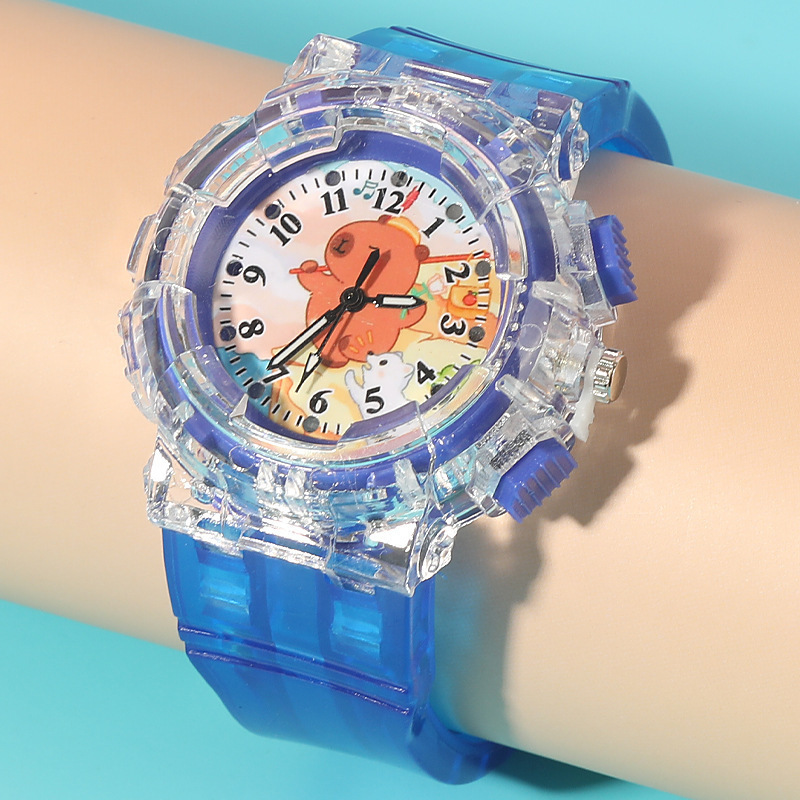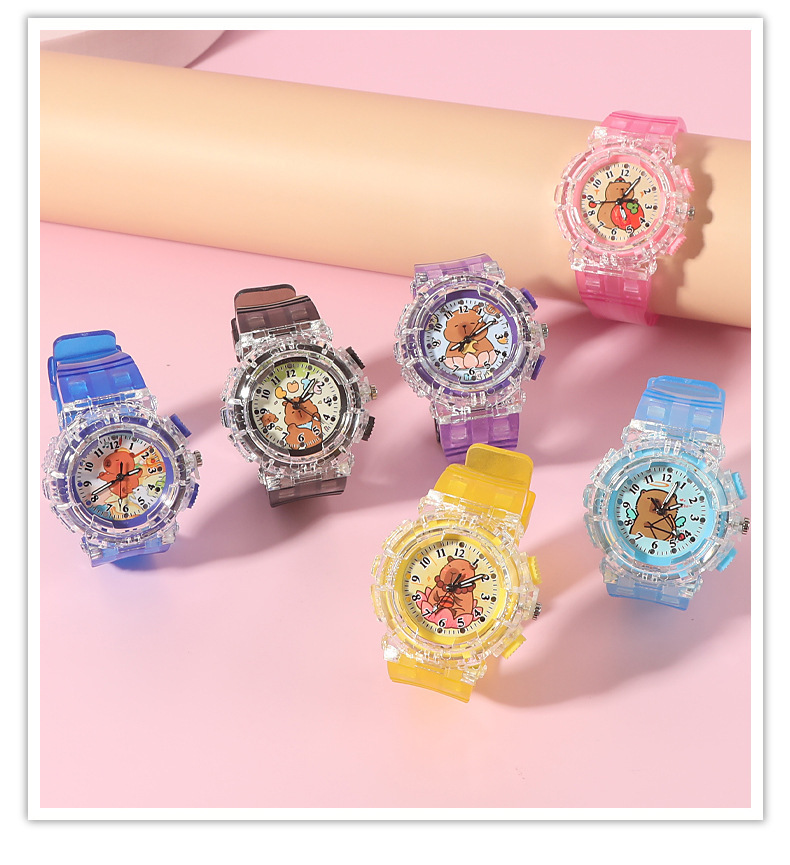 Детские часы с героями мультфильмов, милые кварцевые часы капибара, прозрачный ремень, светящиеся часы для мальчиков и девочек, электронные часы в подарок
