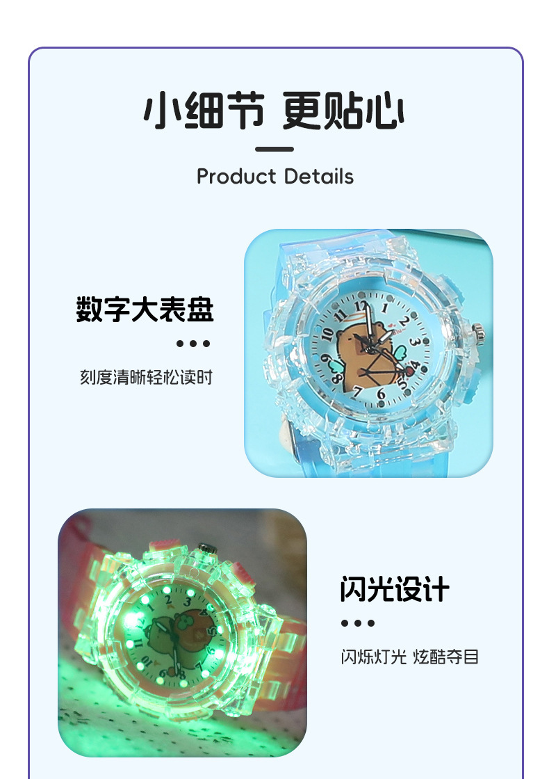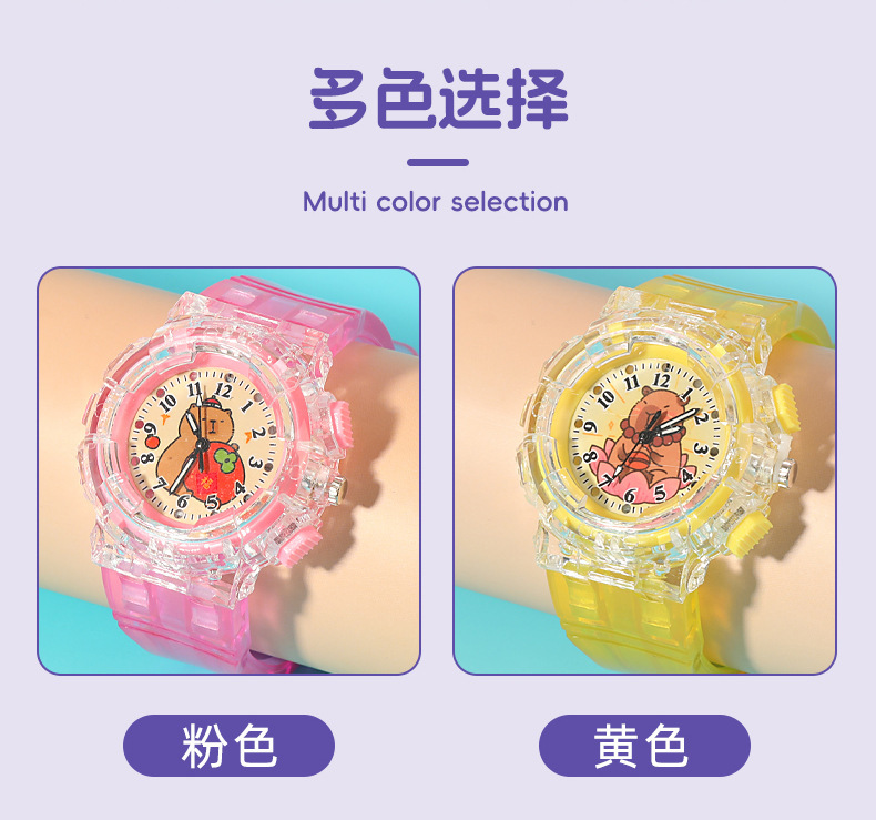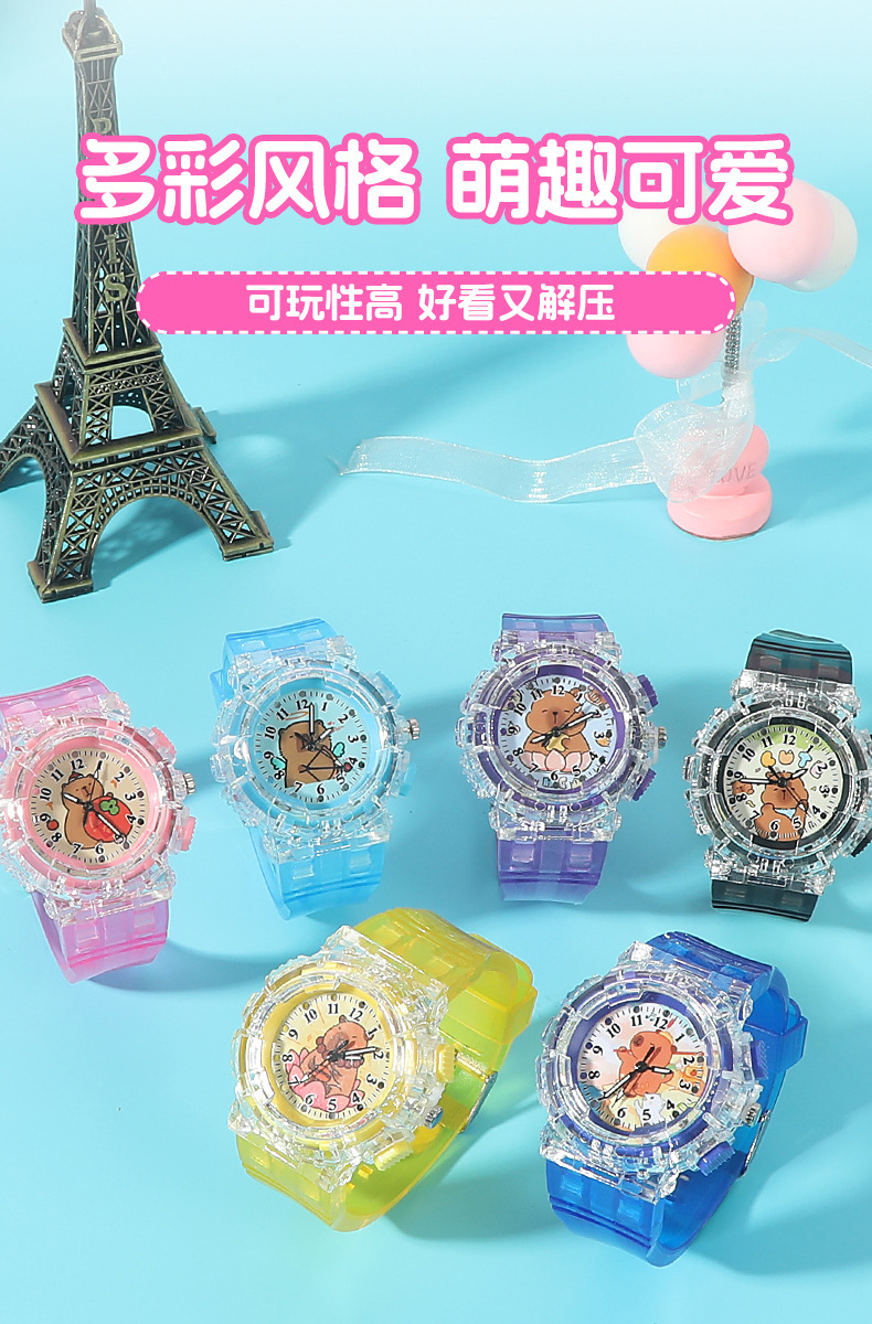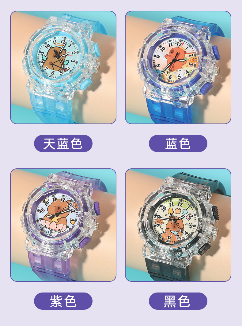 Детские часы с героями мультфильмов, милые кварцевые часы капибара, прозрачный ремень, светящиеся часы для мальчиков и девочек, электронные часы в подарок