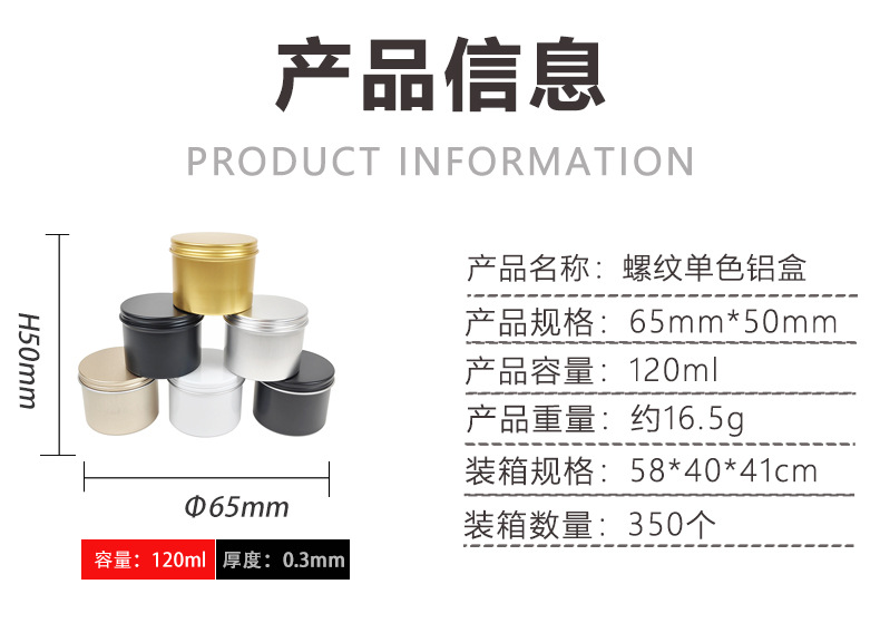 120 г алюминиевая банка 65*50 мм с резьбой, чистая монохромная, 120 мл, цилиндрическая упаковка для лекарств, матовая металлическая коробка