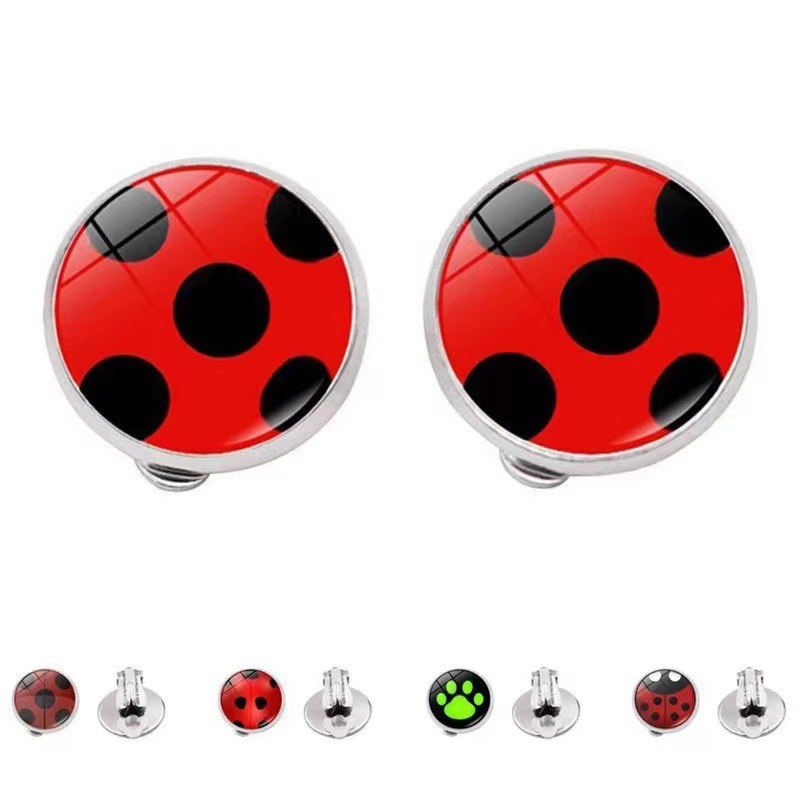 Круглые серьги-клипсы в стиле аниме с рисунком божьей коровки и медвежьей лапой, серебряные серьги с пирсингом, аксессуары
