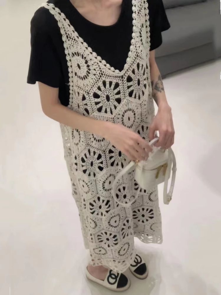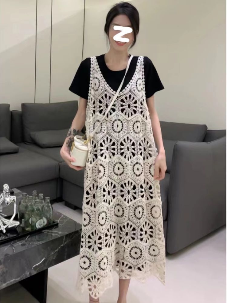 Черная юбка с низом/цельная вещь; Кружевная юбка крючком/цельная вещь; Юбка с черным низом + кружевная юбка, связанная крючком/комплект из двух предметов