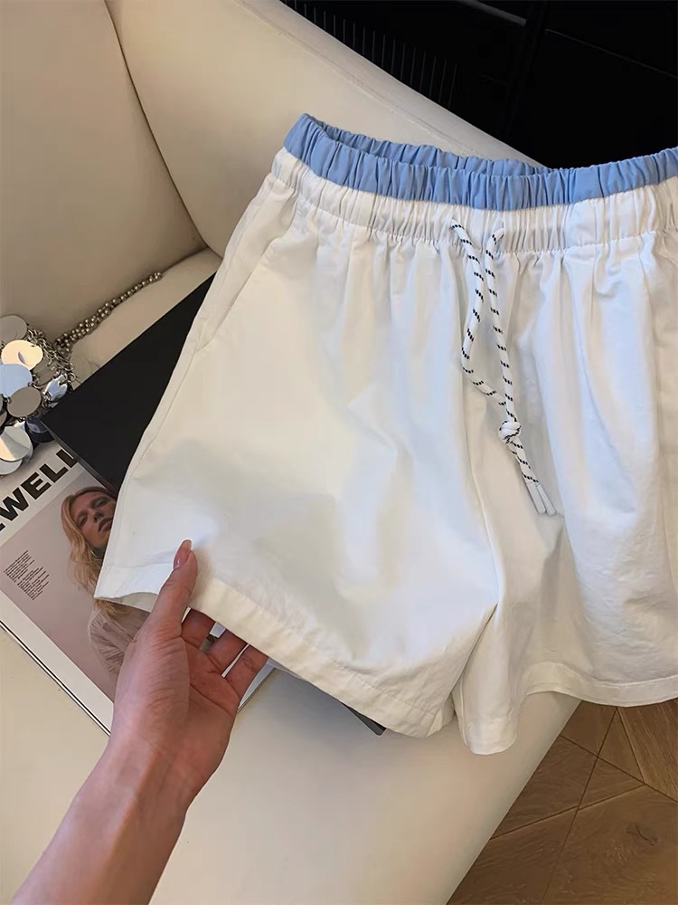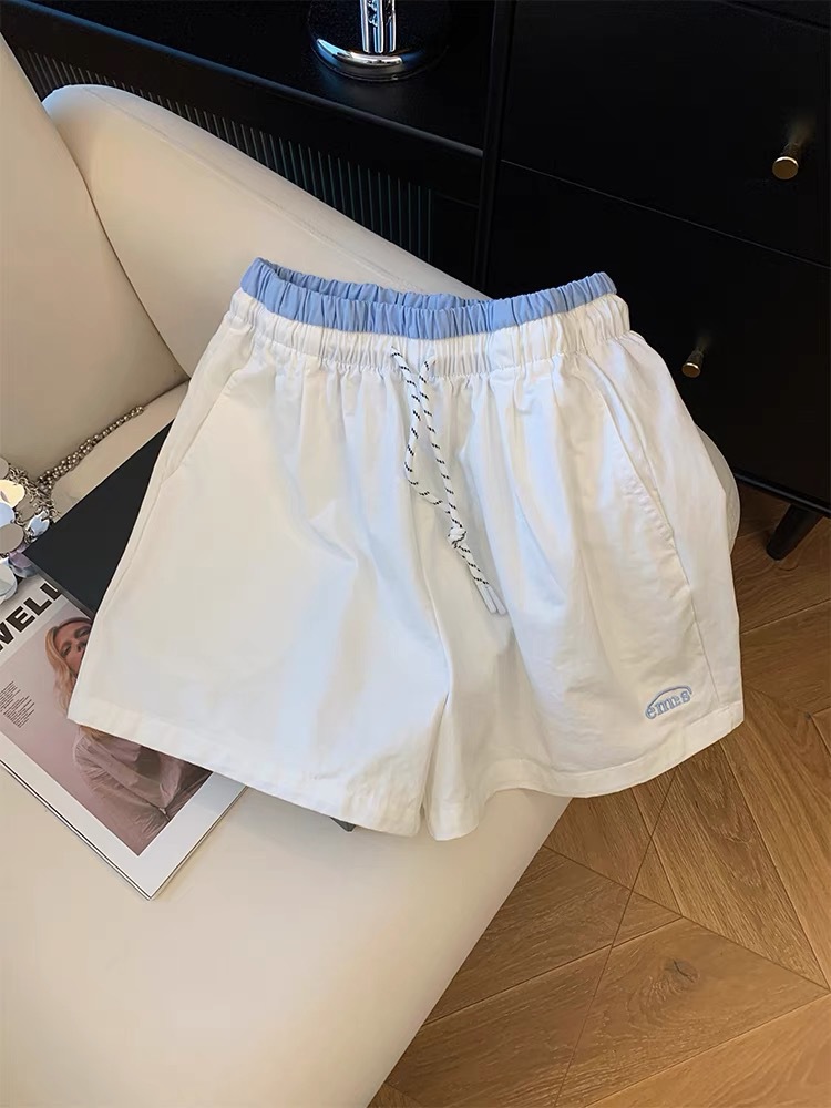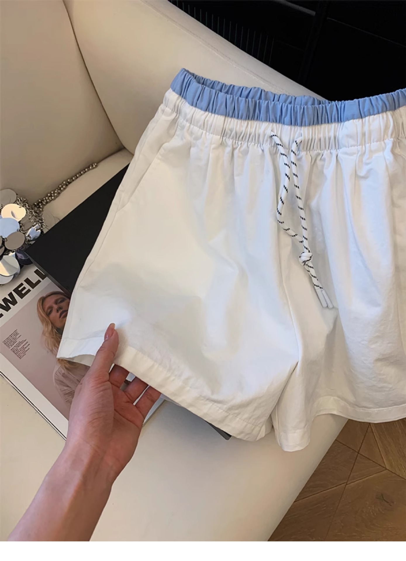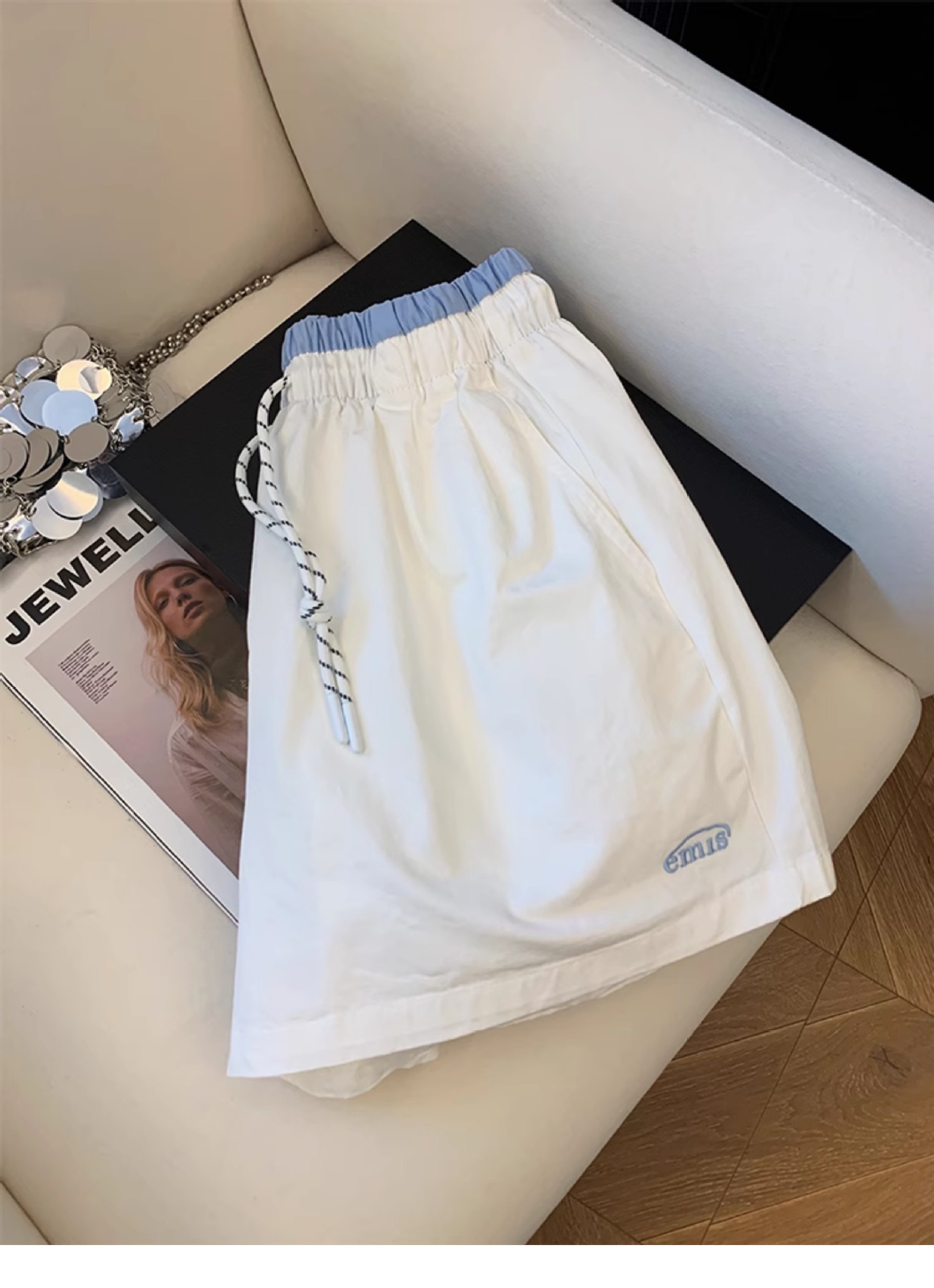 Корейские стильные свободные спортивные шорты с завязками для женщин, 2025 новый ленивый стиль, белые брюки