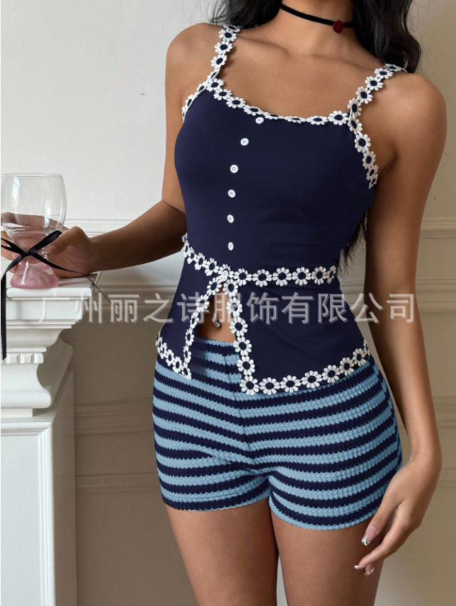 Женские шорты 2025 года в европейском и американском стиле, новинка весны-лета, модные полосатые шорты с низкой посадкой и высокой эластичностью для женщин, для трансграничной торговли на Amazon.