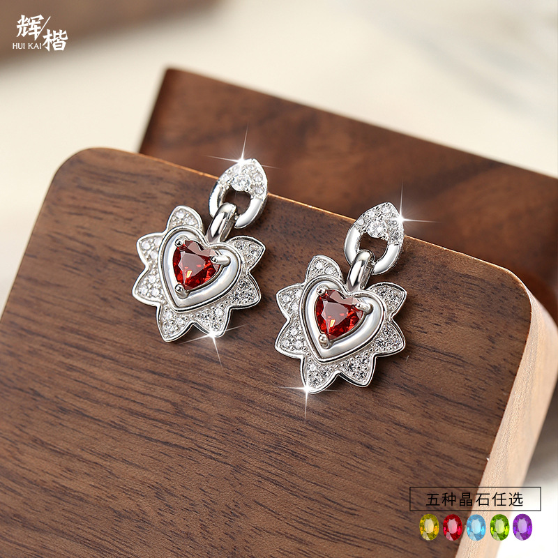 Ювелирные изделия Hui Kai, новые серьги-гвоздики из стерлингового серебра S925 на каждый день, простые серьги-гвоздики в форме сердца диаметром 5 мм с натуральным кристаллическим камнем для женщин, нишевые трансграничные.