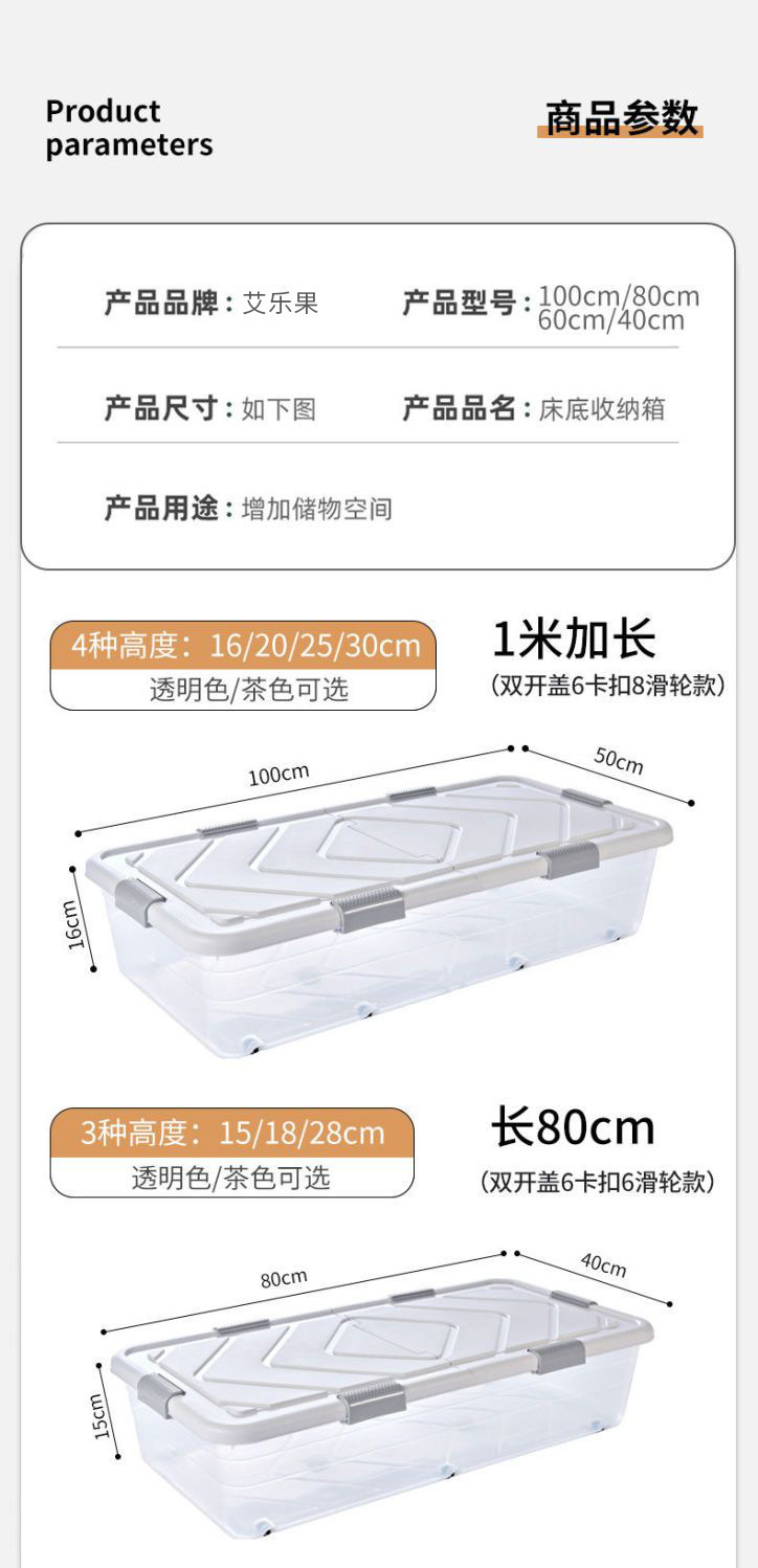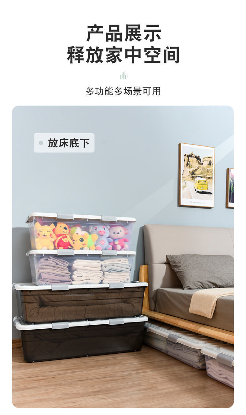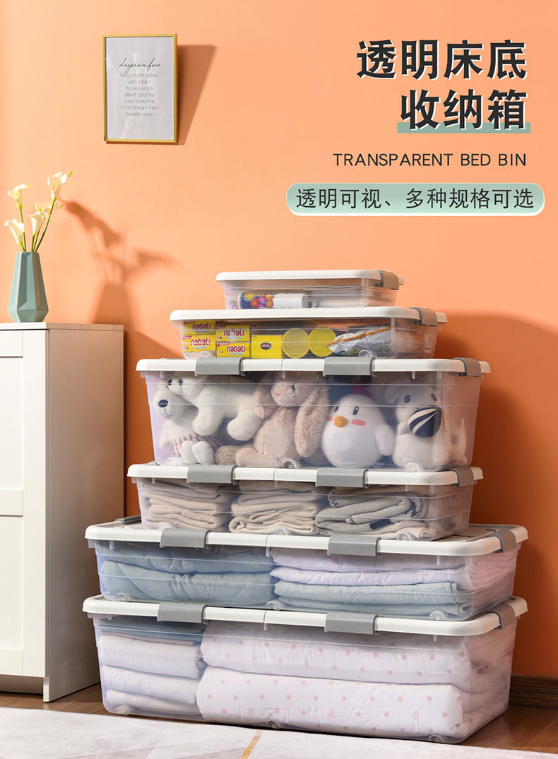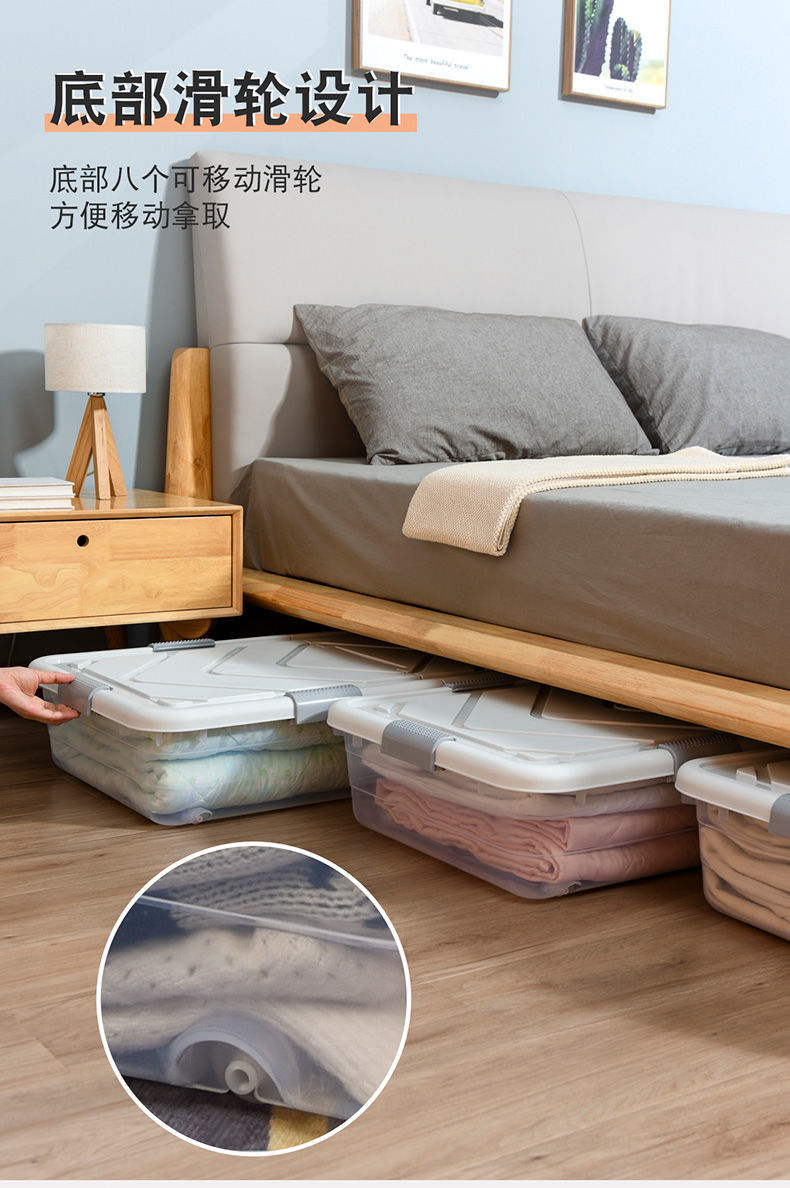 Ящик для хранения под кроватью, прозрачный ящик для хранения одежды большой вместимости, ящик для домашнего хранения на колесах, товары для общежития