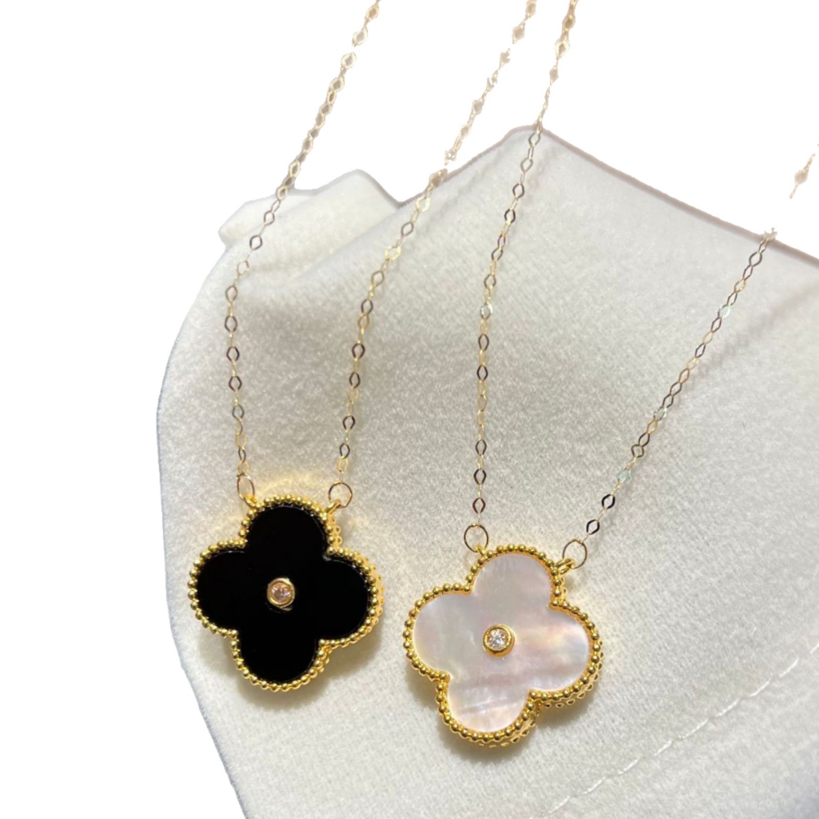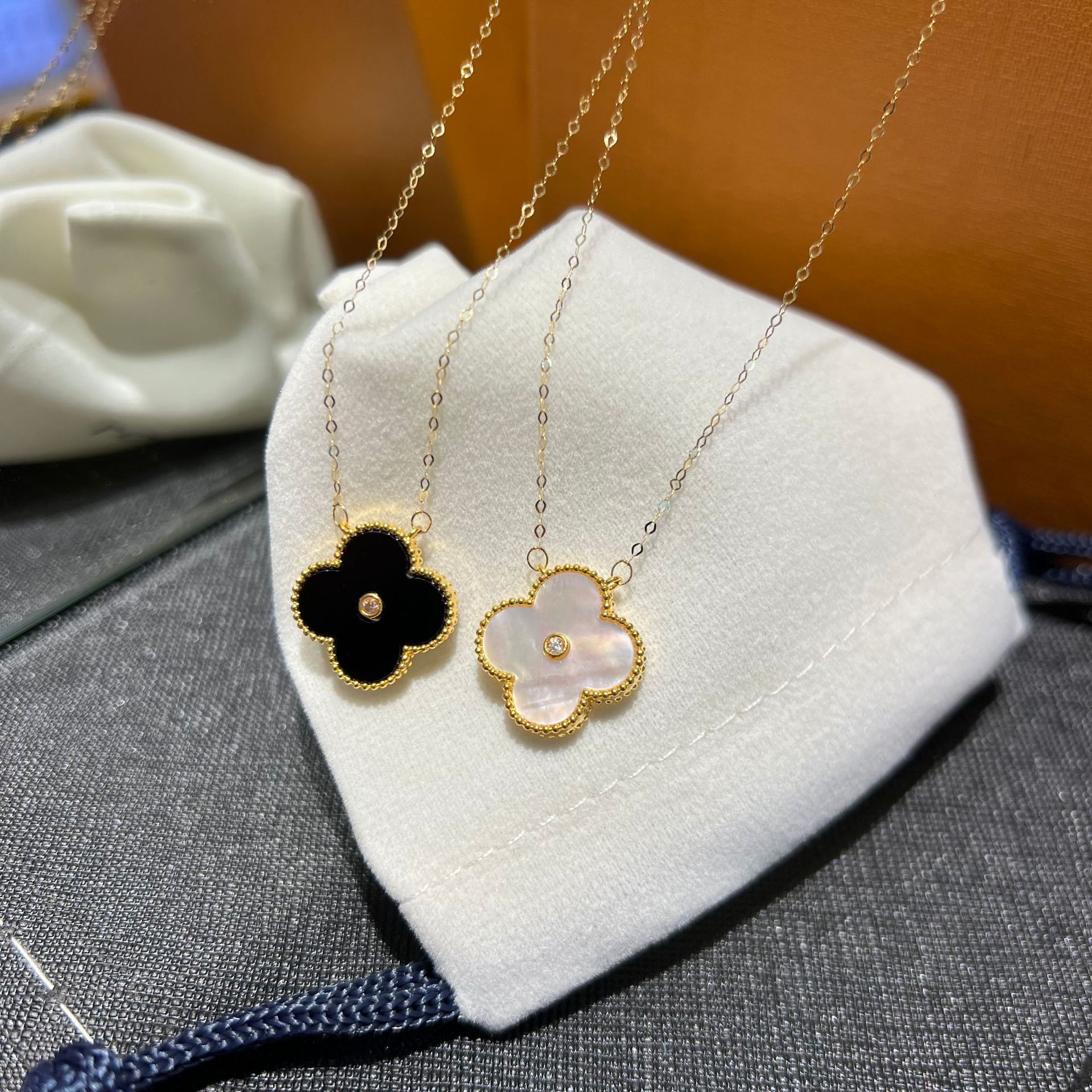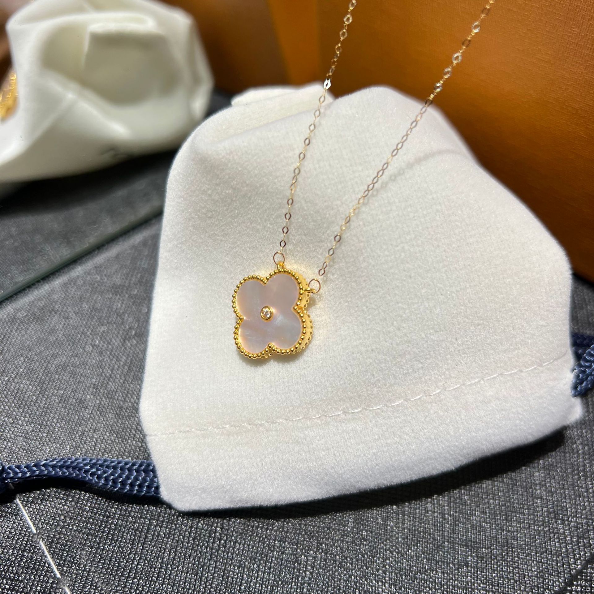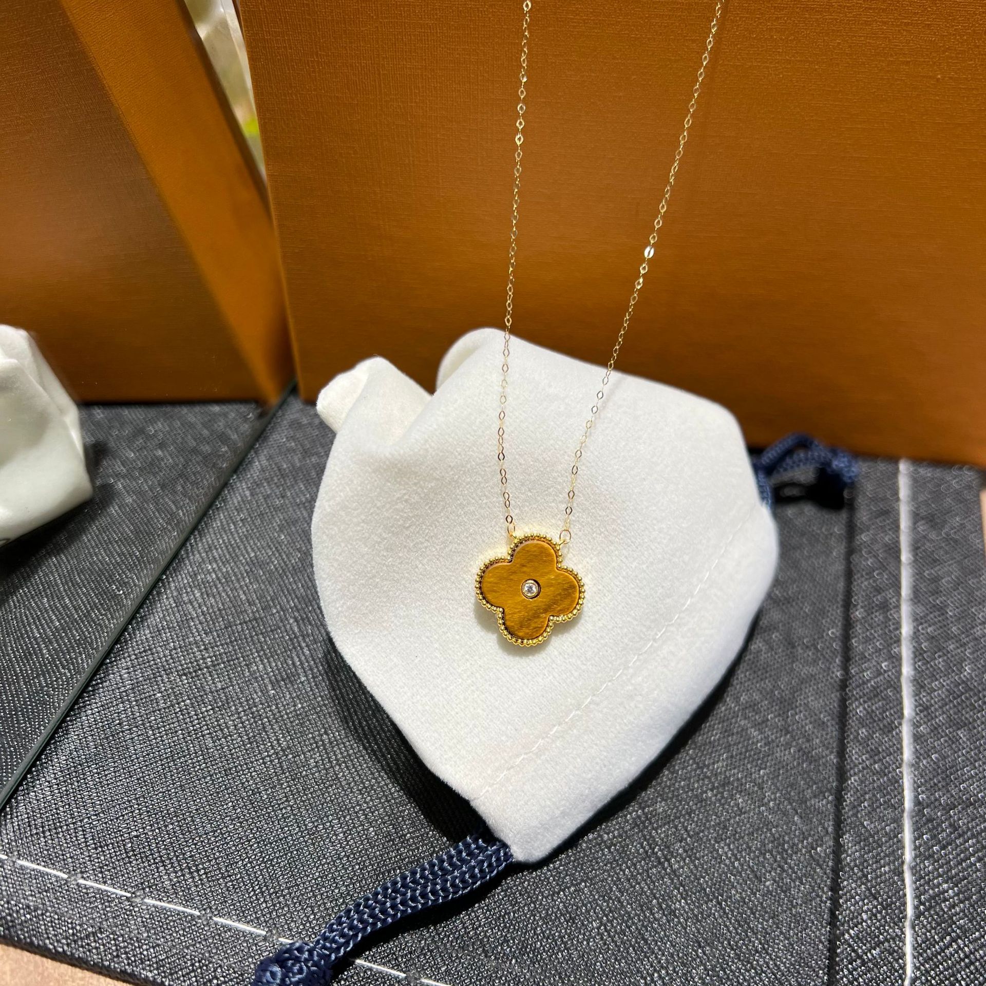 Ожерелье из золота 18 карат au750, цвет золота, двуухранный четырехлистный клевер с бриллиантами, доступная роскошная нишевая цепочка на ключицу, подвеска, женская золотая ракушка