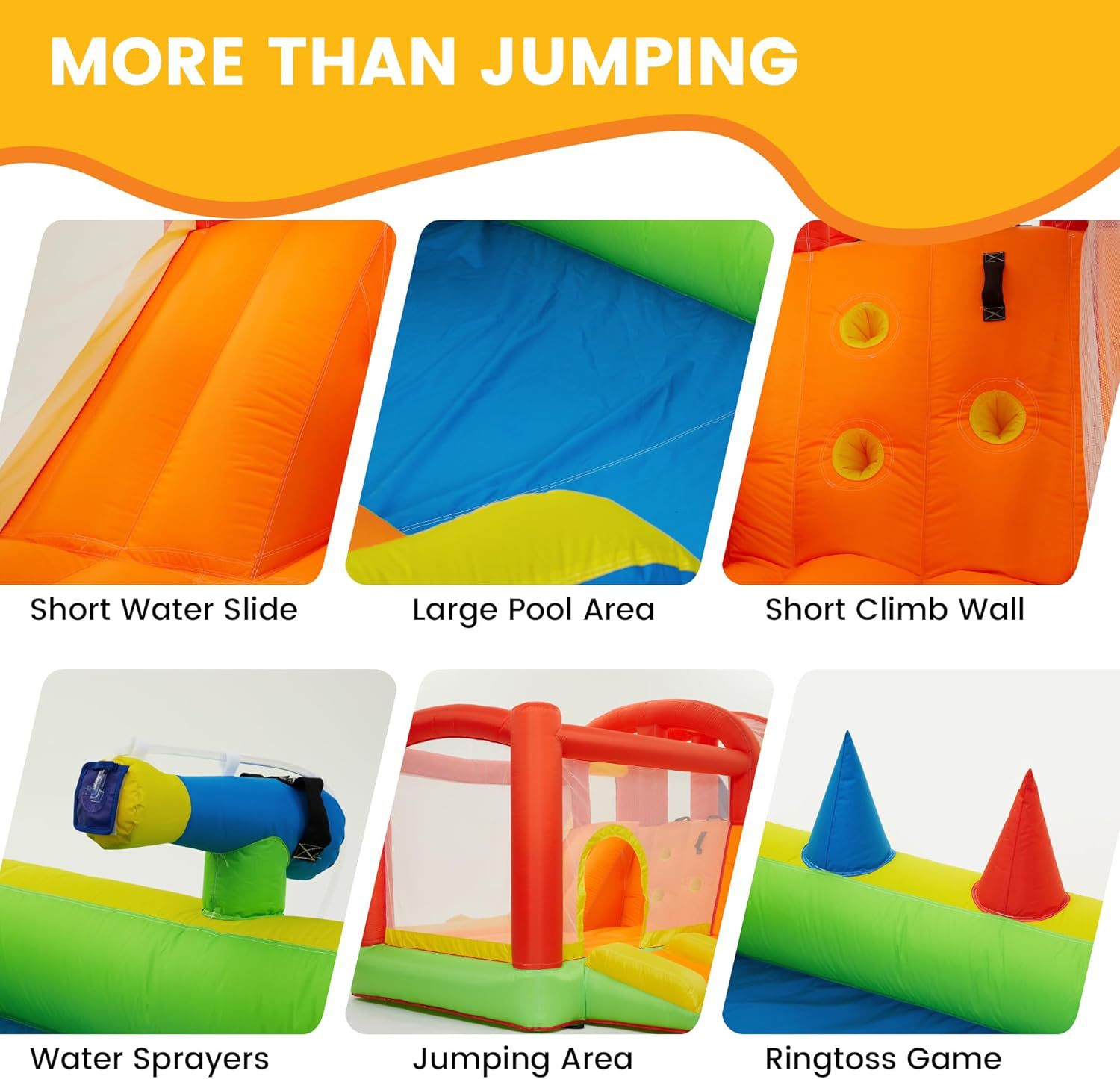 我们广泛的产品范围包括充气保镖城堡、水上滑梯、水上公园、户外帐篷、特技安全气囊、B M X/F M X安全气囊、雪地安全气囊、自由降落安全气囊、充气运动游戏、气垫、充气功能、保险杠球、骑牛机等。我们还提供O E M和O D M服务,以满足您的具体要求。