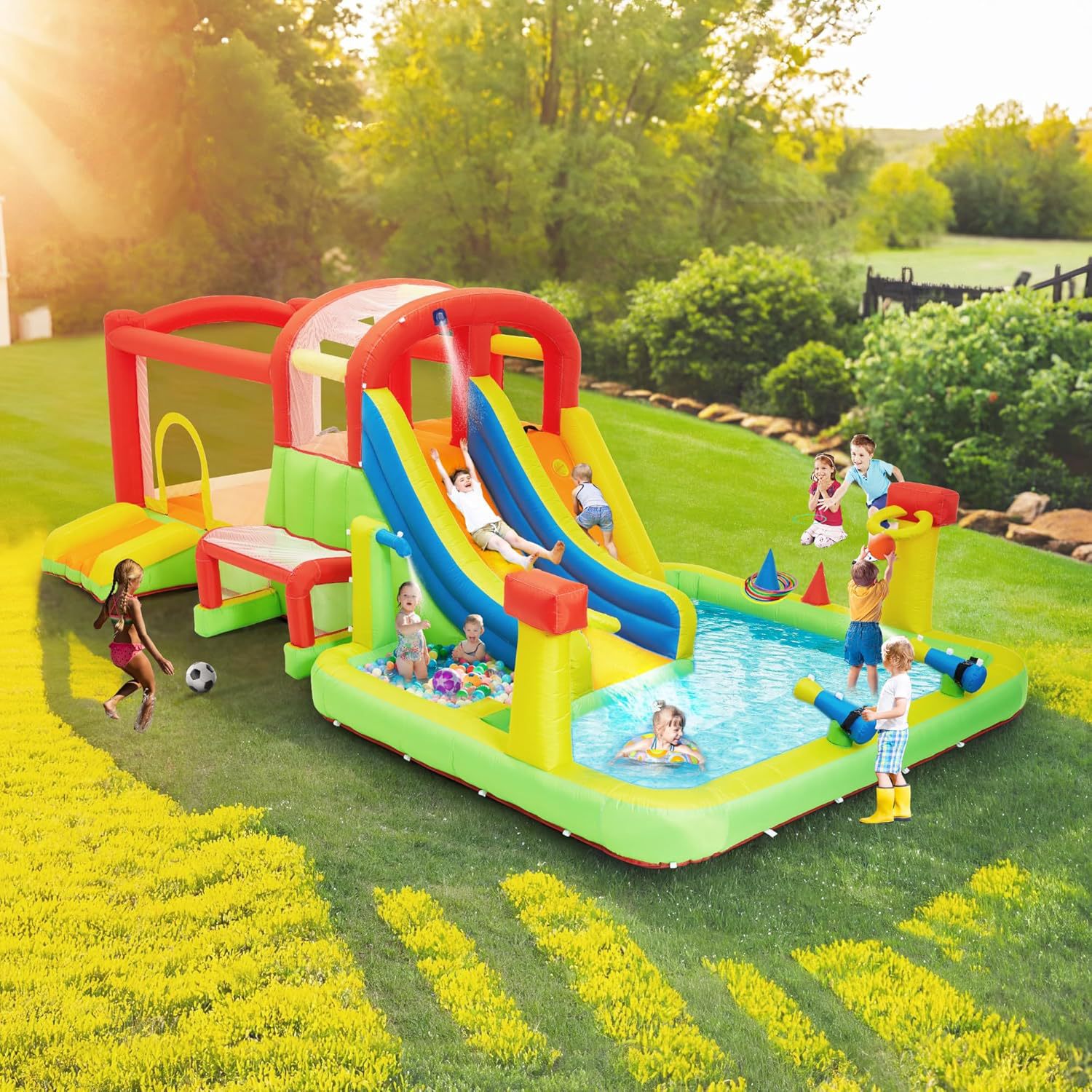 Детский надувной замок для улицы с водяной горкой, домашний мини-батут, бассейн для малышей