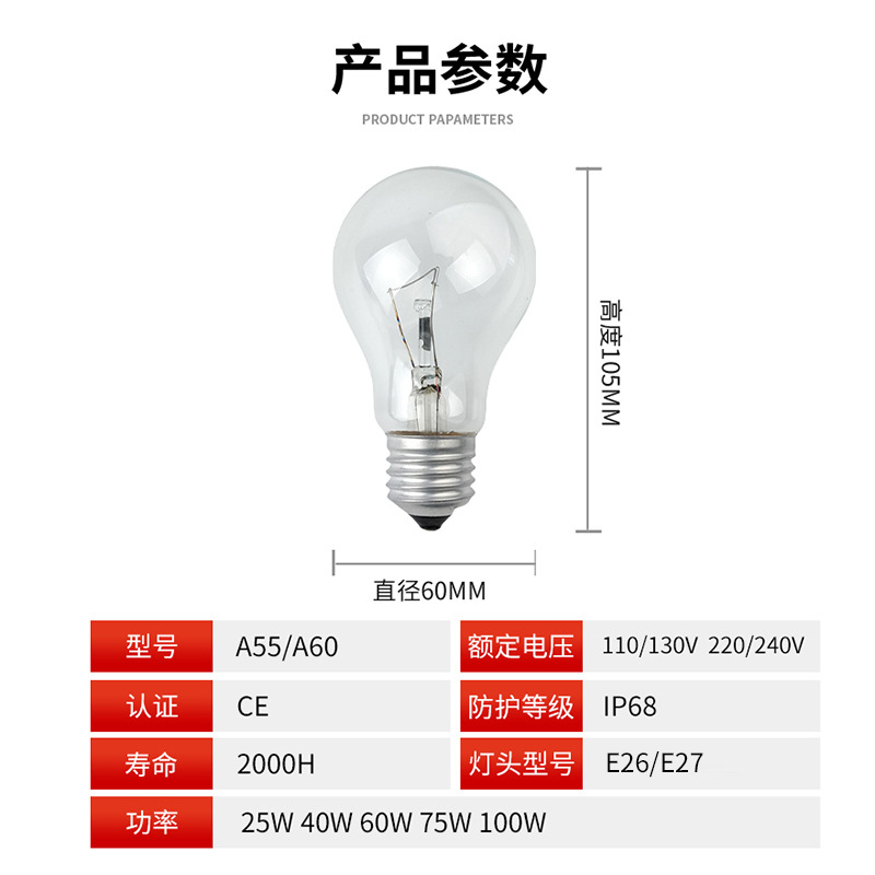 Оптовая продажа ретро-ламп с вольфрамовой нитью накаливания, прозрачное стекло, стандартная цокольная головка, лампы накаливания A55/A60, энергосберегающие