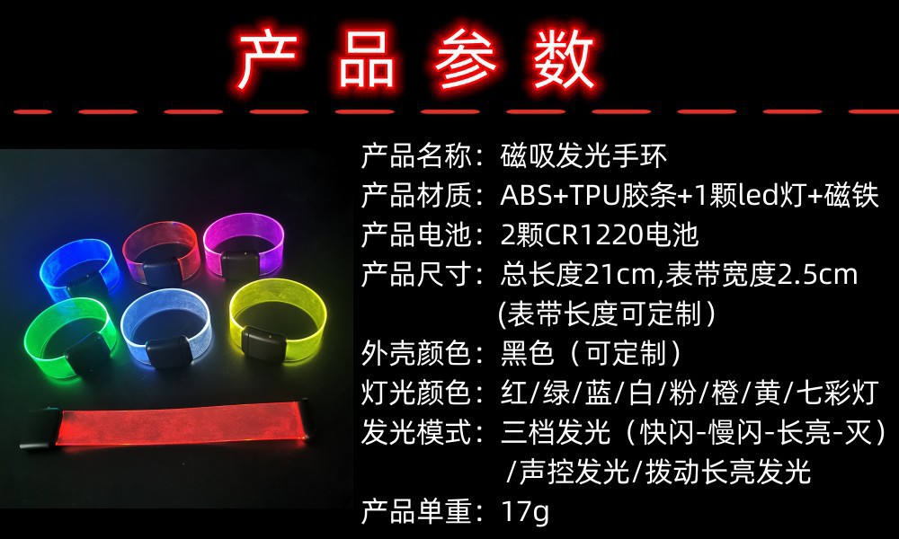 Оптовый производитель светодиодных светящихся браслетов с кнопкой, магнитные разноцветные флуоресцентные браслеты, поддерживающие браслеты с возможностью печати