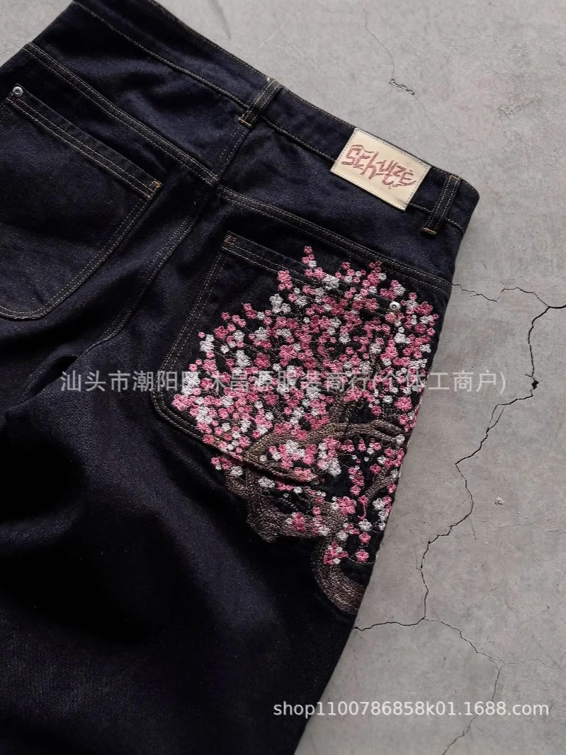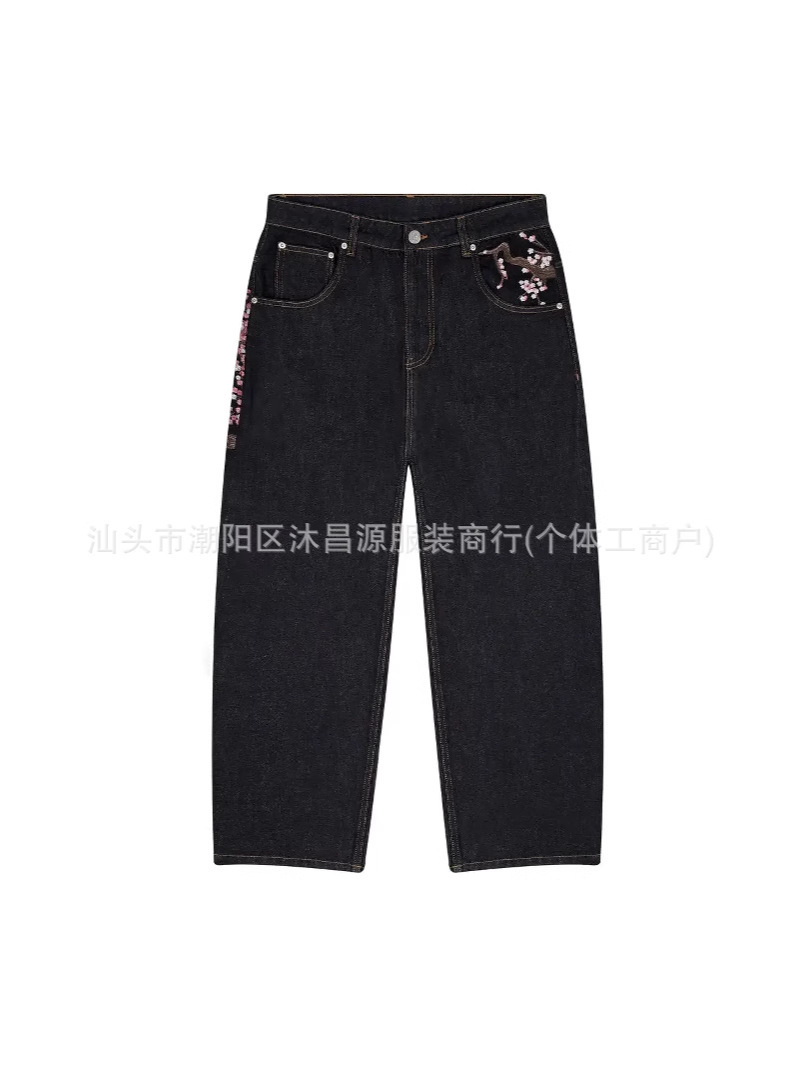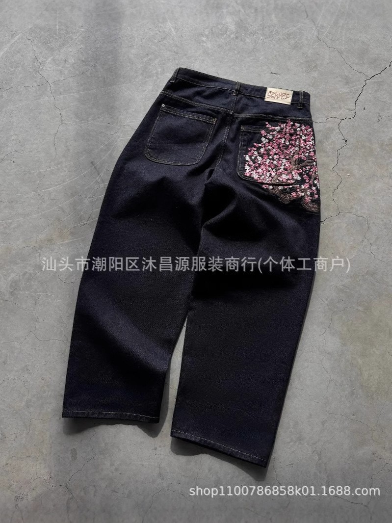 Американские ретро-джинсы с вышивкой, персонализированные, в стиле стритвир, широкие, повседневные, универсальные, в стиле хип-хоп, для трансграничной внешней торговли