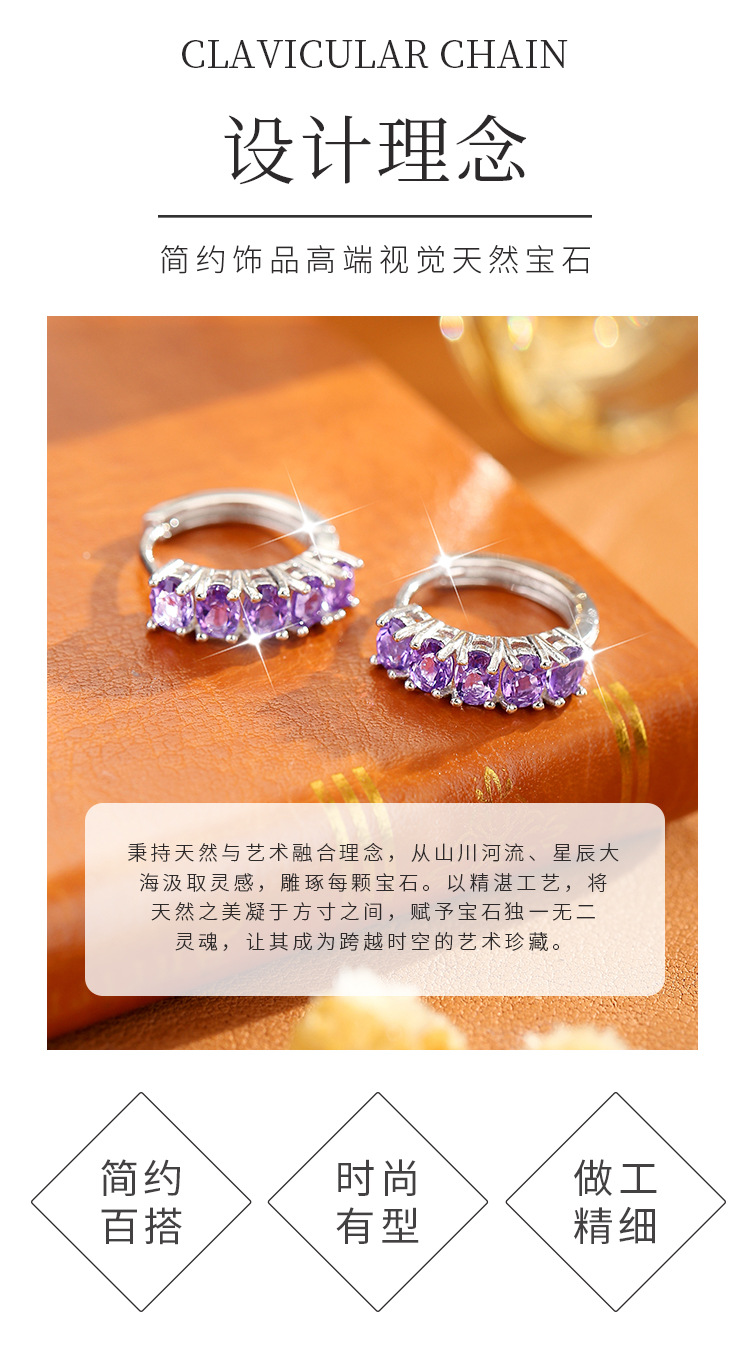 Серьги из стерлингового серебра S925 в европейском и американском стиле, высококачественные серьги с инкрустацией натурального кристаллического камня, доступные роскошные серьги, нишевые серьги с аметистом и цитрином