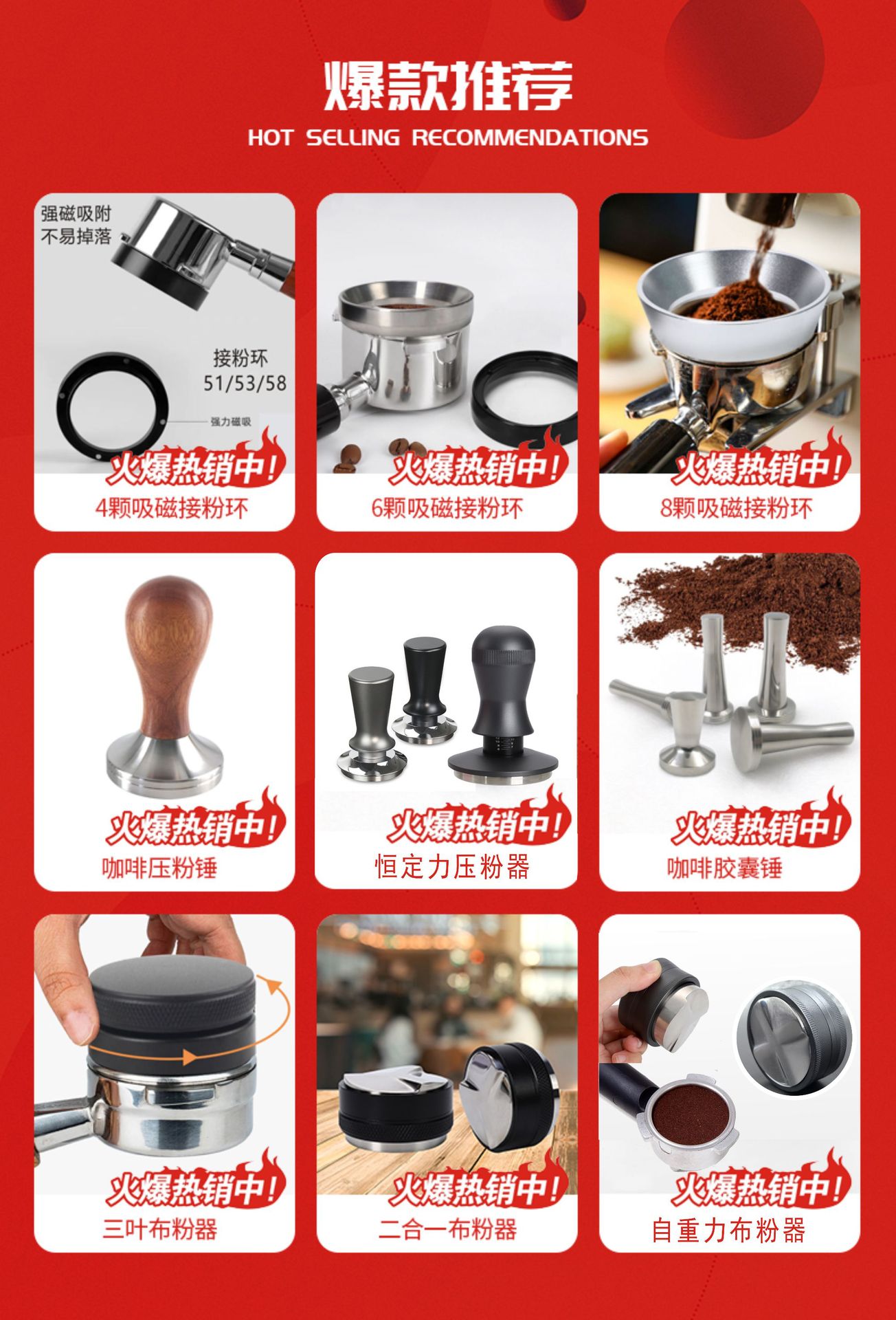 Кольцо для приема порошка кофемашины, кольцо для приема порошка, колпачок для порошка в итальянском стиле, легкий магнитный колпачок для приема порошка из 6 частей оптом 51/53/5