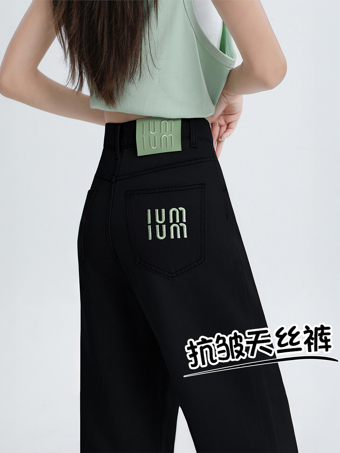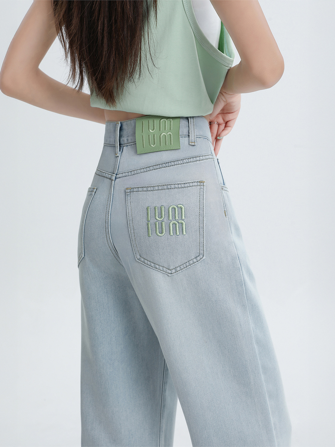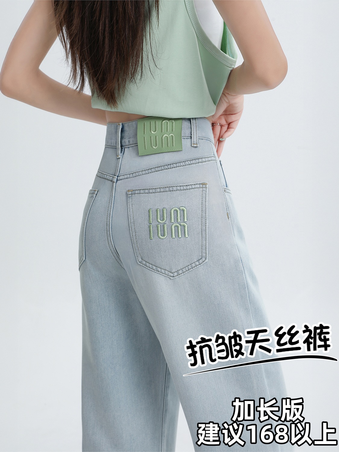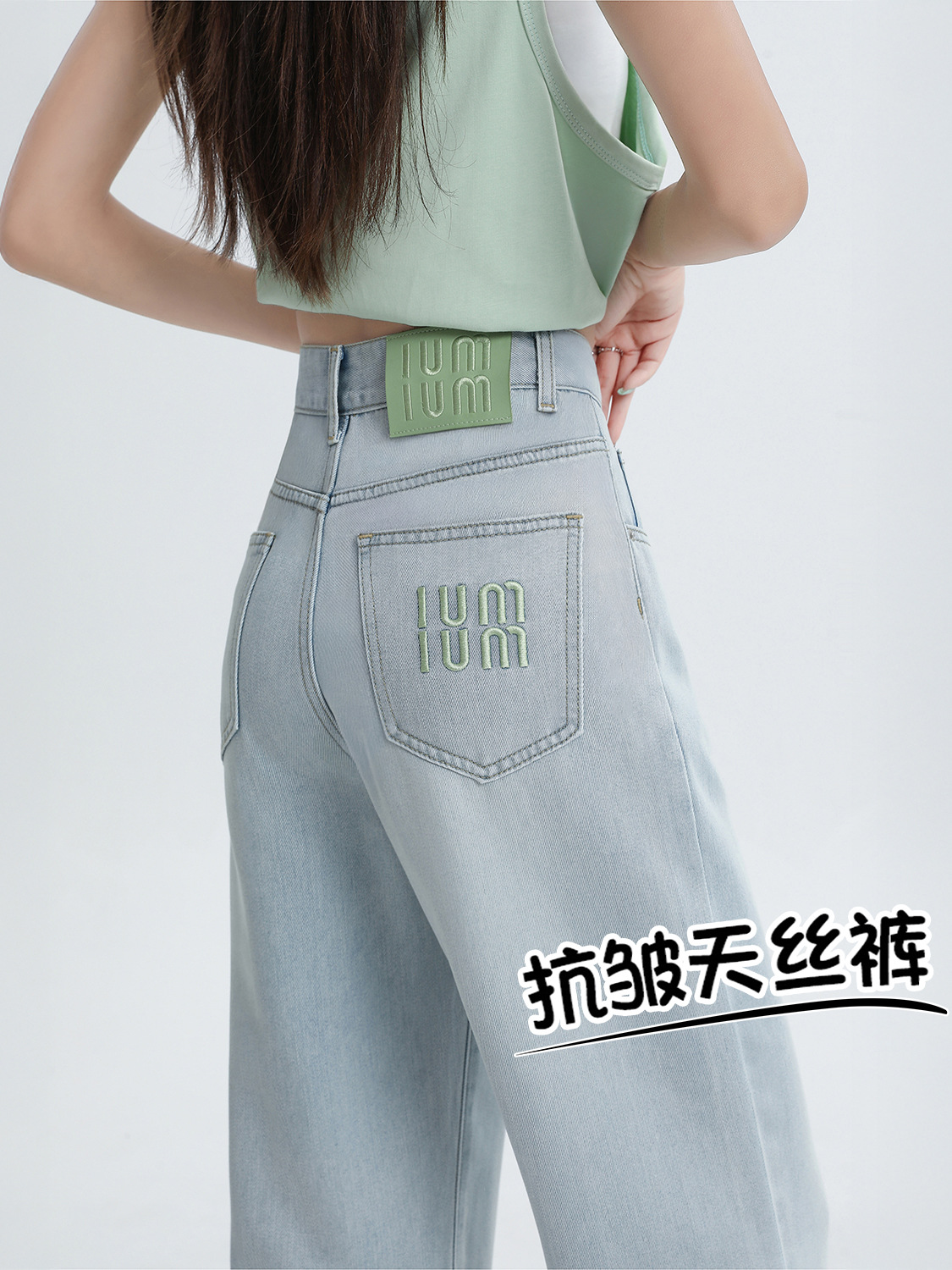 Светло-голубые прямые джинсы с вышивкой из тенселя для женщин, летние тонкие широкие брюки из ледяного шелка с высокой талией и драпировкой для полных девушек