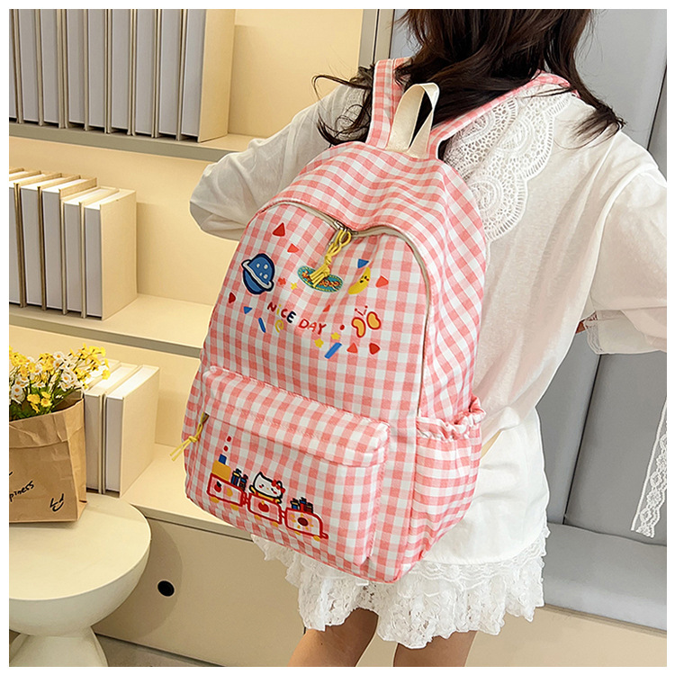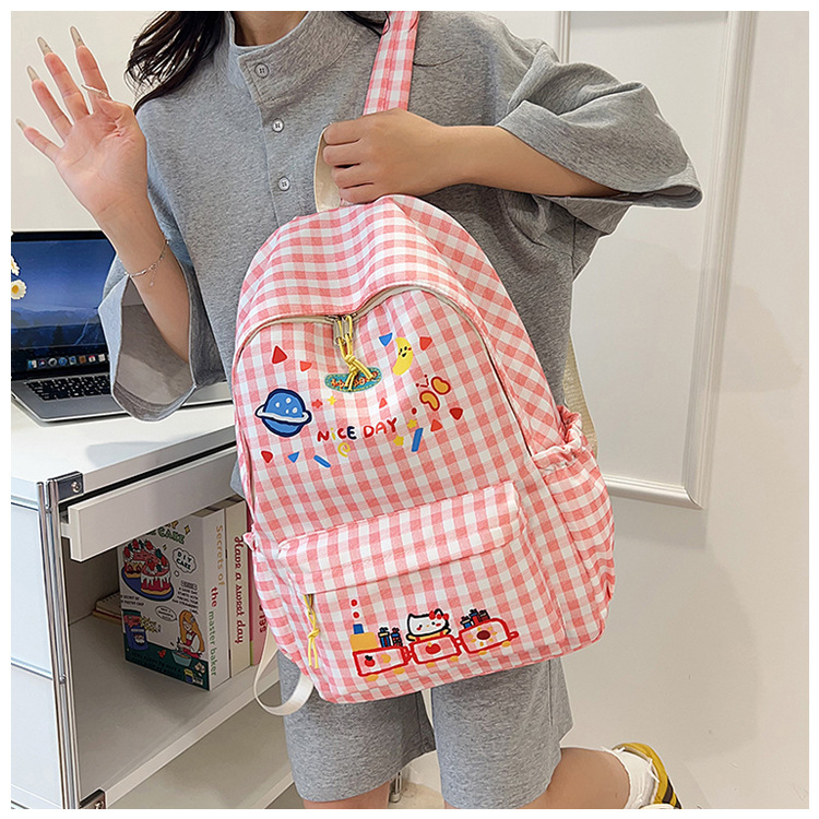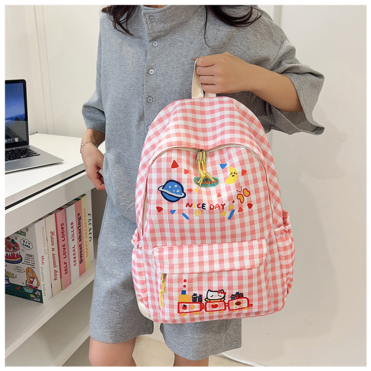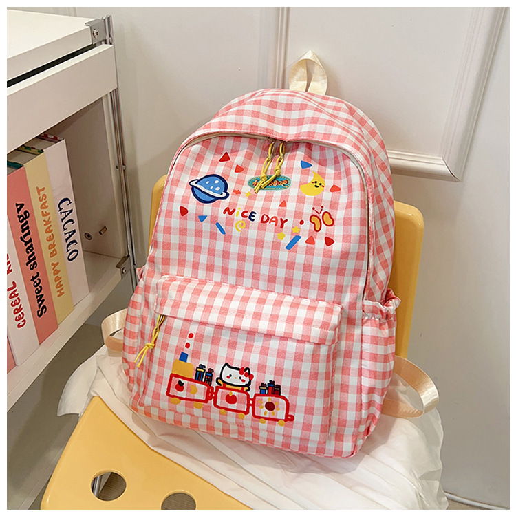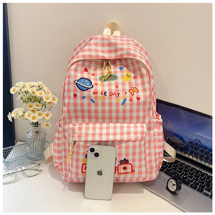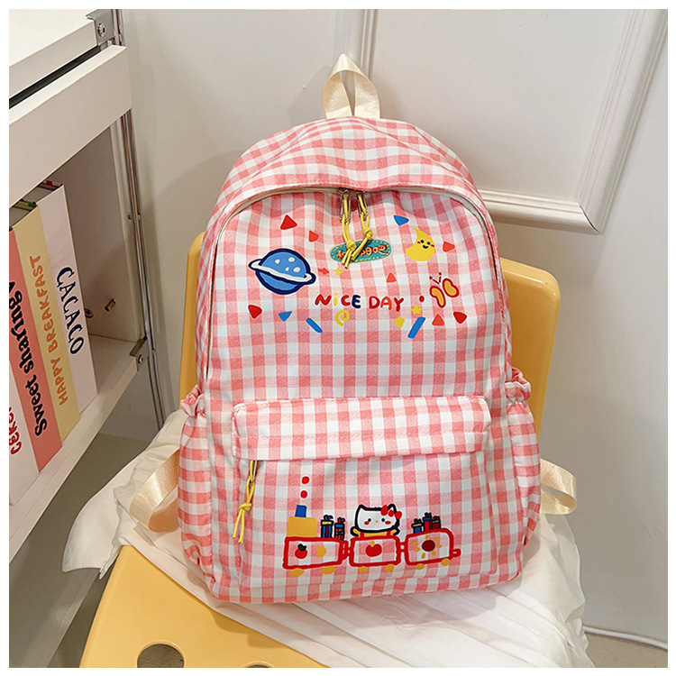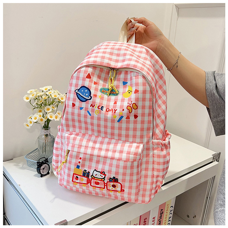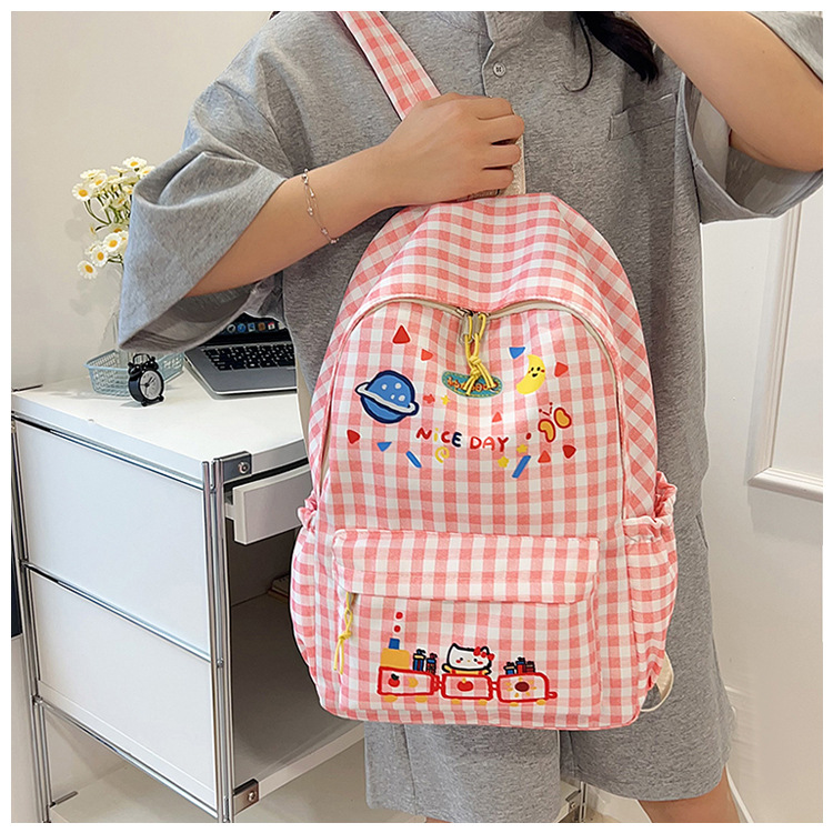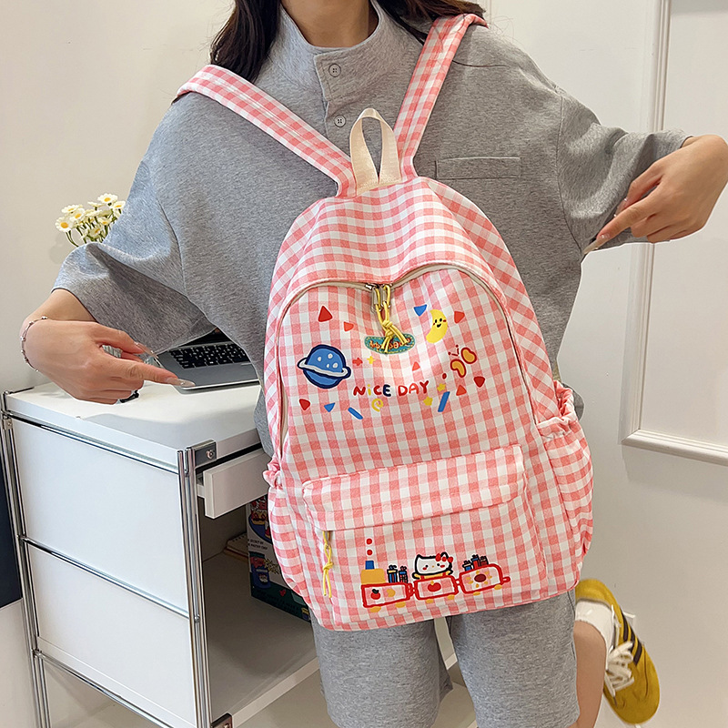 Милый детский школьный рюкзак в корейском стиле, новый модный текстурированный рюкзак большой вместимости, модный школьный рюкзак в японском стиле в клетку для учеников начальной школы
