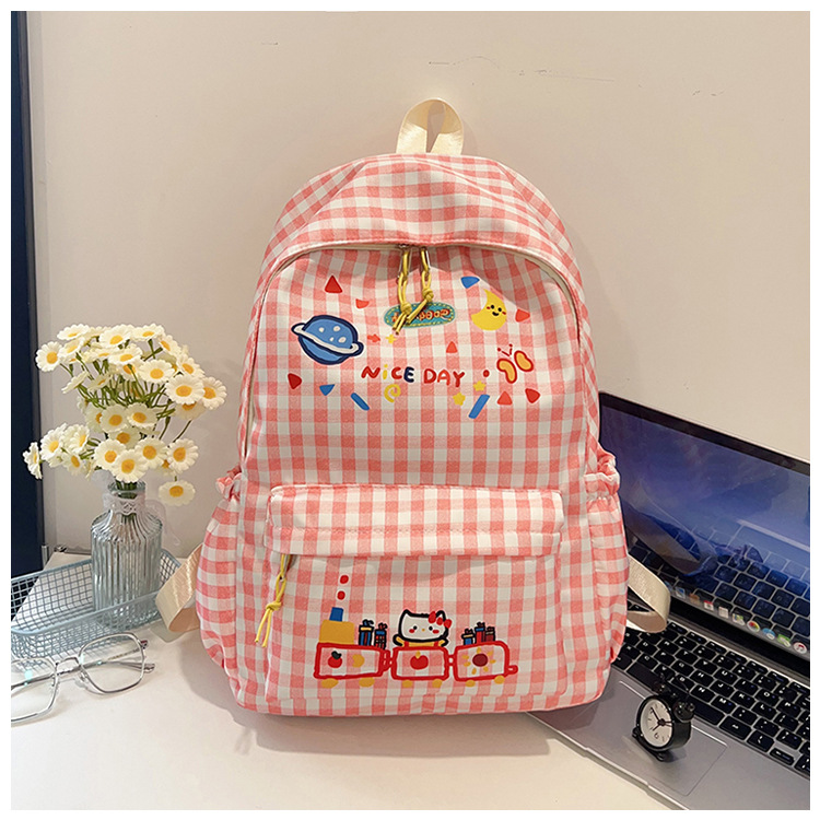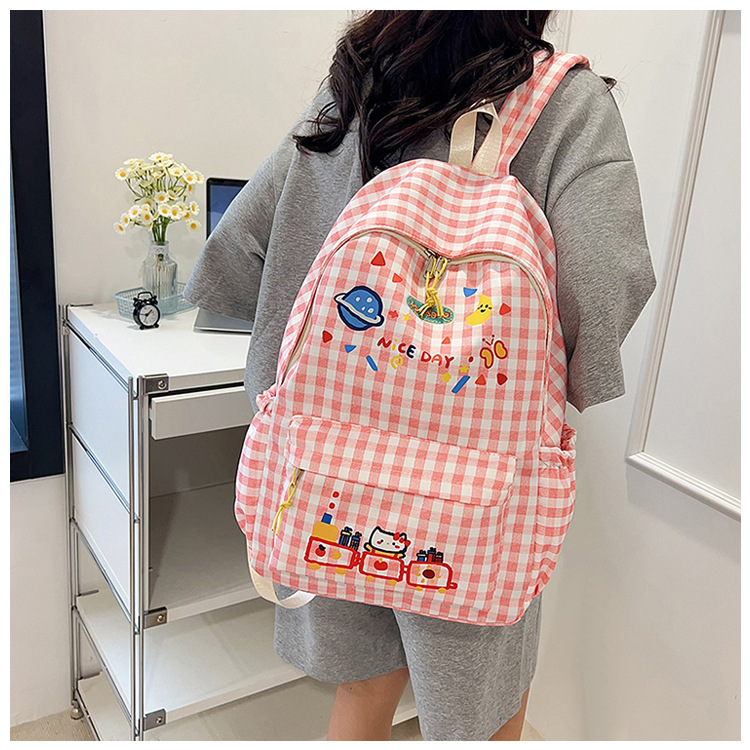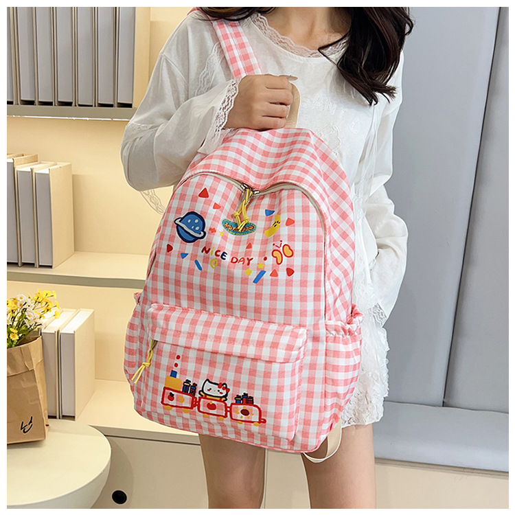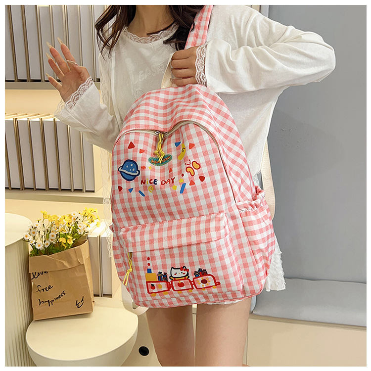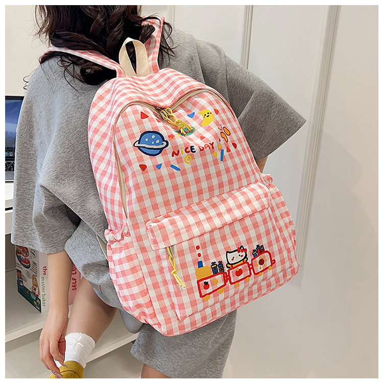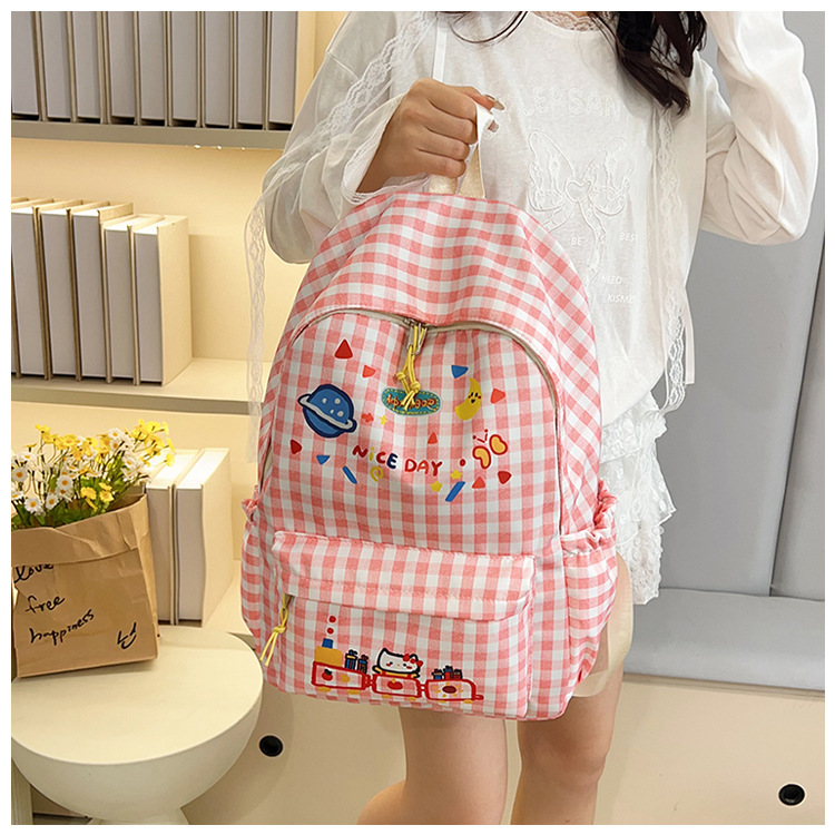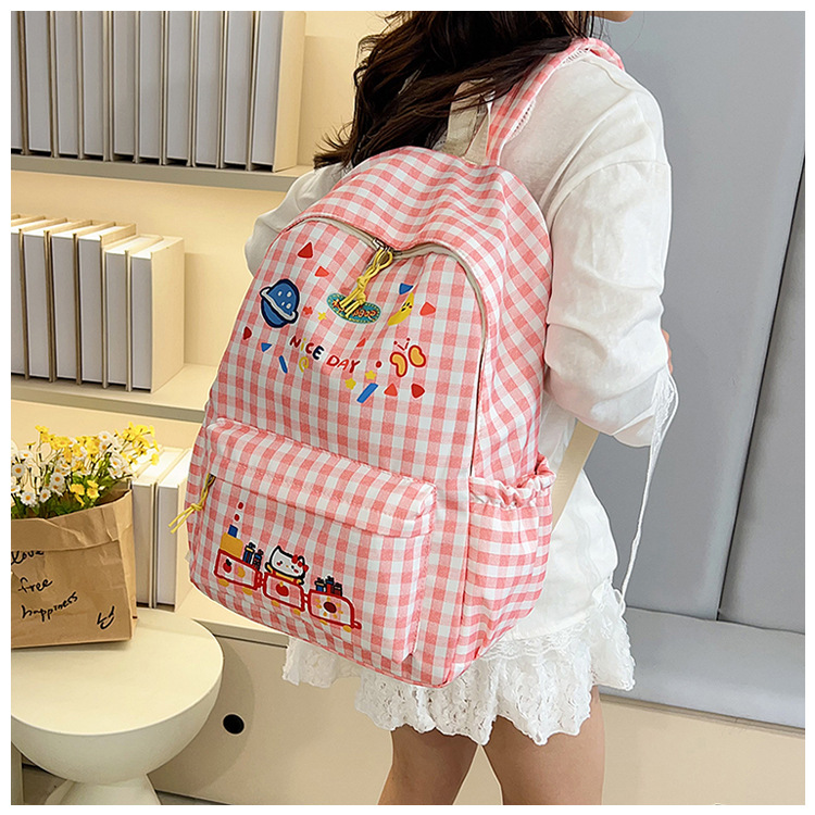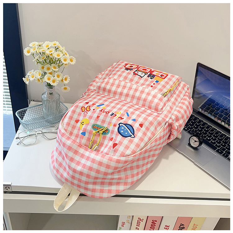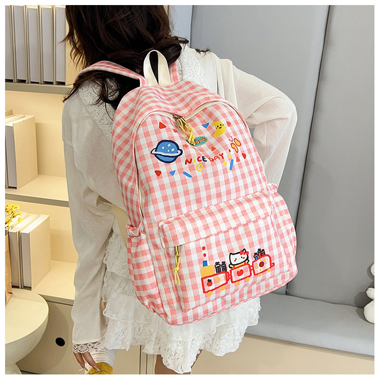 Милый детский школьный рюкзак в корейском стиле, новый модный текстурированный рюкзак большой вместимости, модный школьный рюкзак в японском стиле в клетку для учеников начальной школы