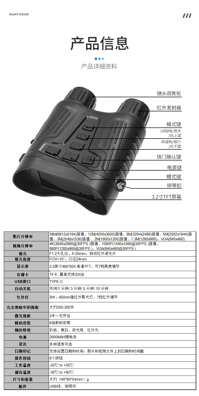Популярный бинокулярный инфракрасный телескоп ночного видения NV2180 от производителя, 8-кратный цифровой зум, видео 4K