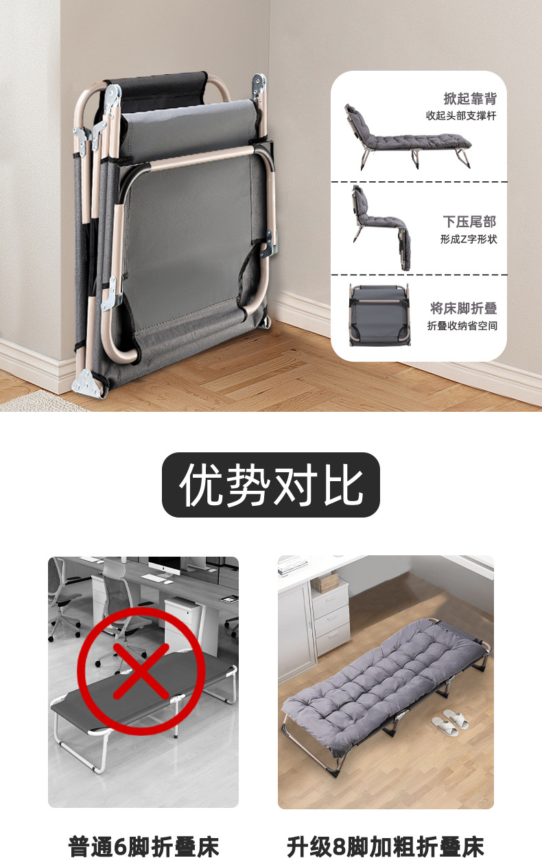 Офисная односпальная кровать для обеденного перерыва, складная кровать для дома, портативная складная кровать с утолщенным хлопковым матрасом, удобное раскладное кресло для отдыха оптом