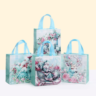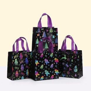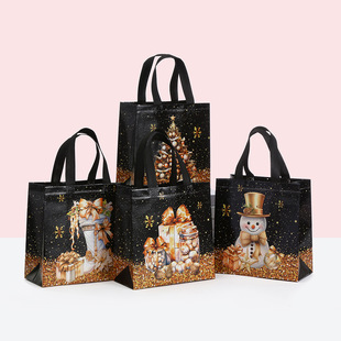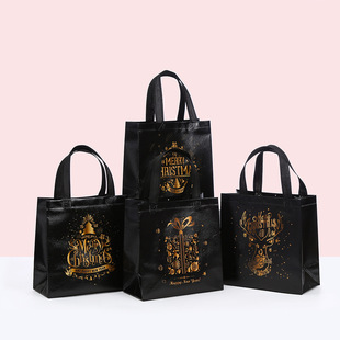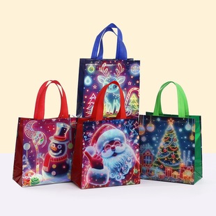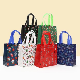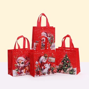 Рождественский подарочный пакет из водонепроницаемой нетканой ткани с лазерной печатью, оптом, для покупок, с лазерной ручкой