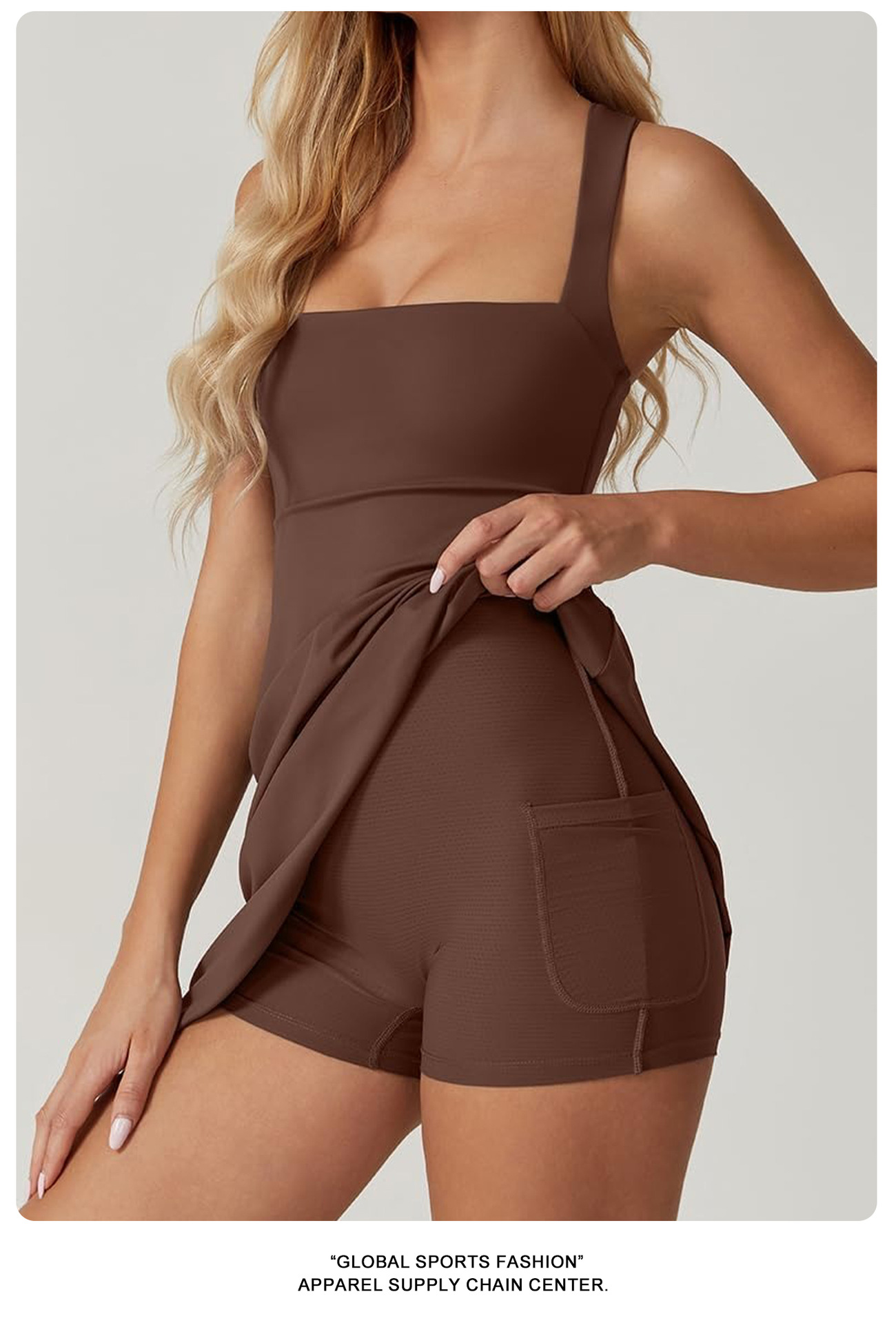 Новое высокогибкое быстросохнущее облегающее теннисное платье с эффектом двух частей, без спинки, для гольфа, спорта и йоги, с короткой юбкой и шортами