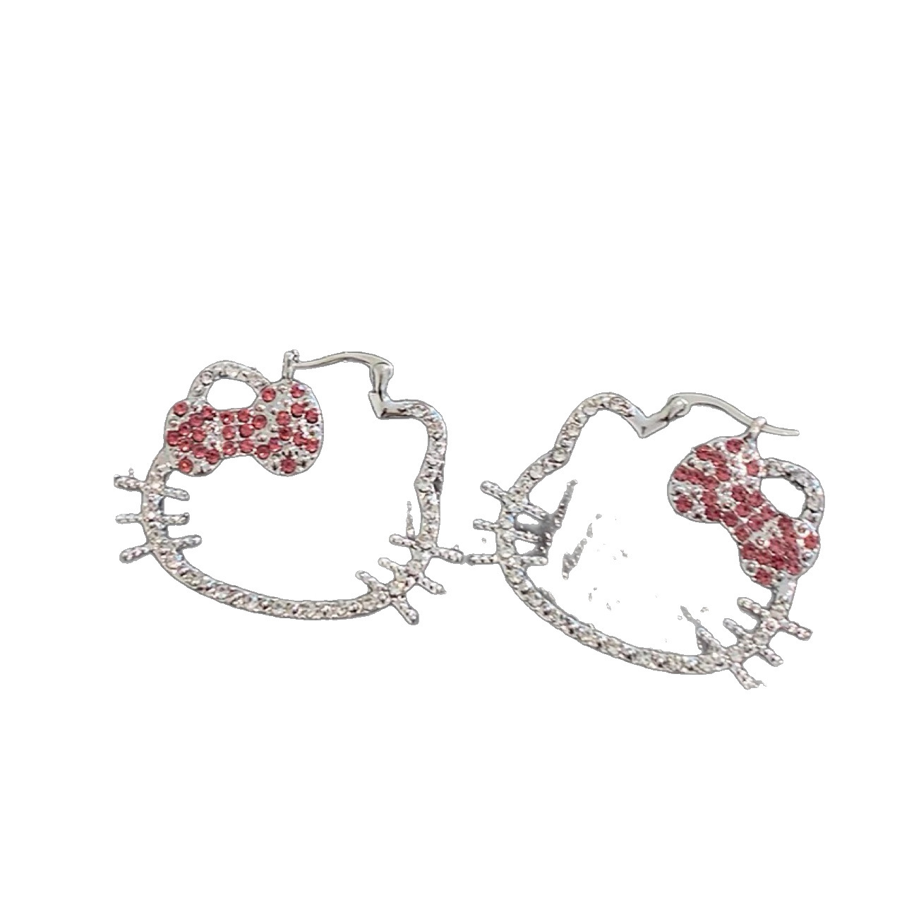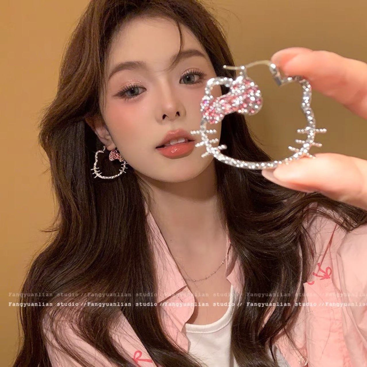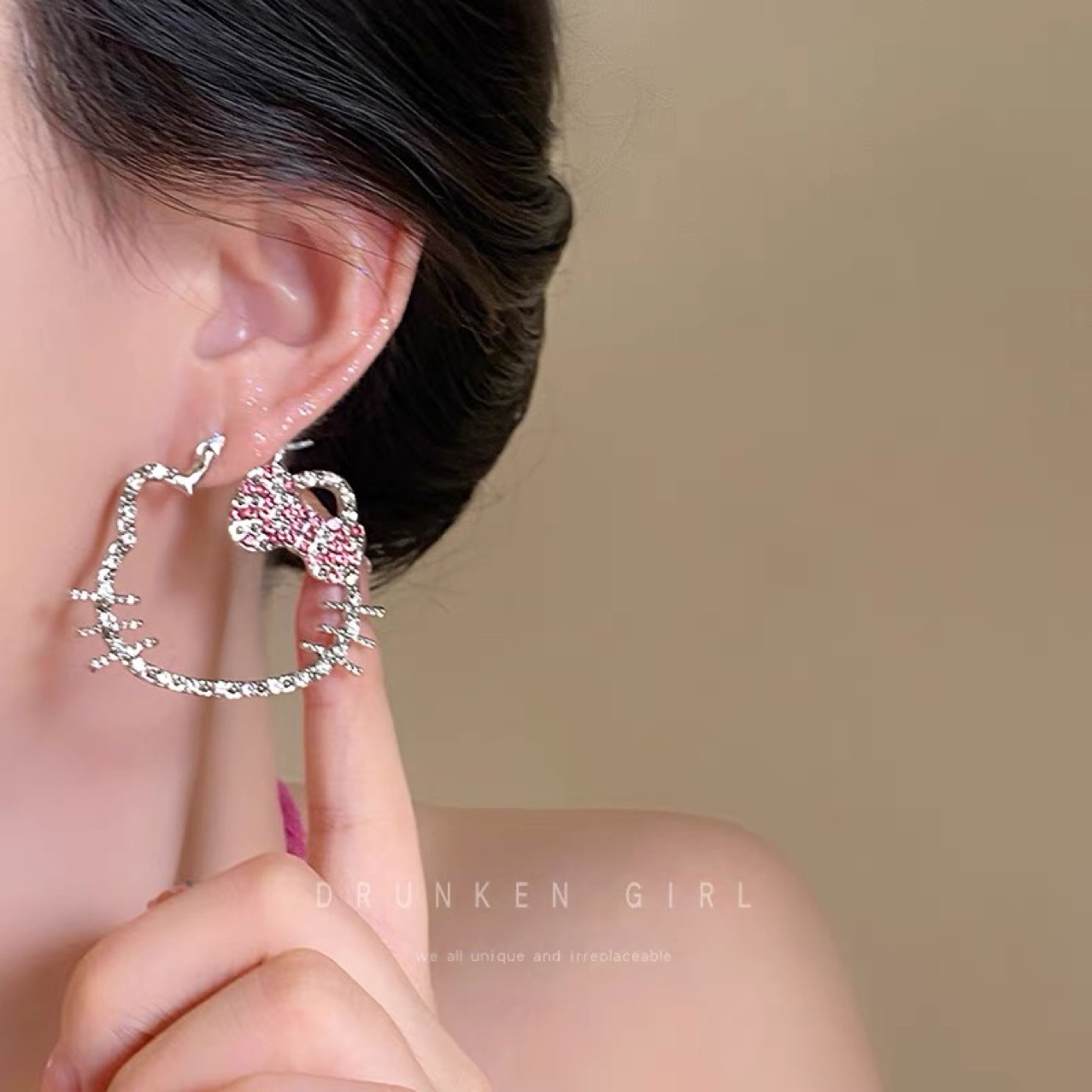 Серебряные серьги Hello Kitty с бриллиантами, модные, простые, изысканные, милые и универсальные серьги, серьги нишевого дизайна.