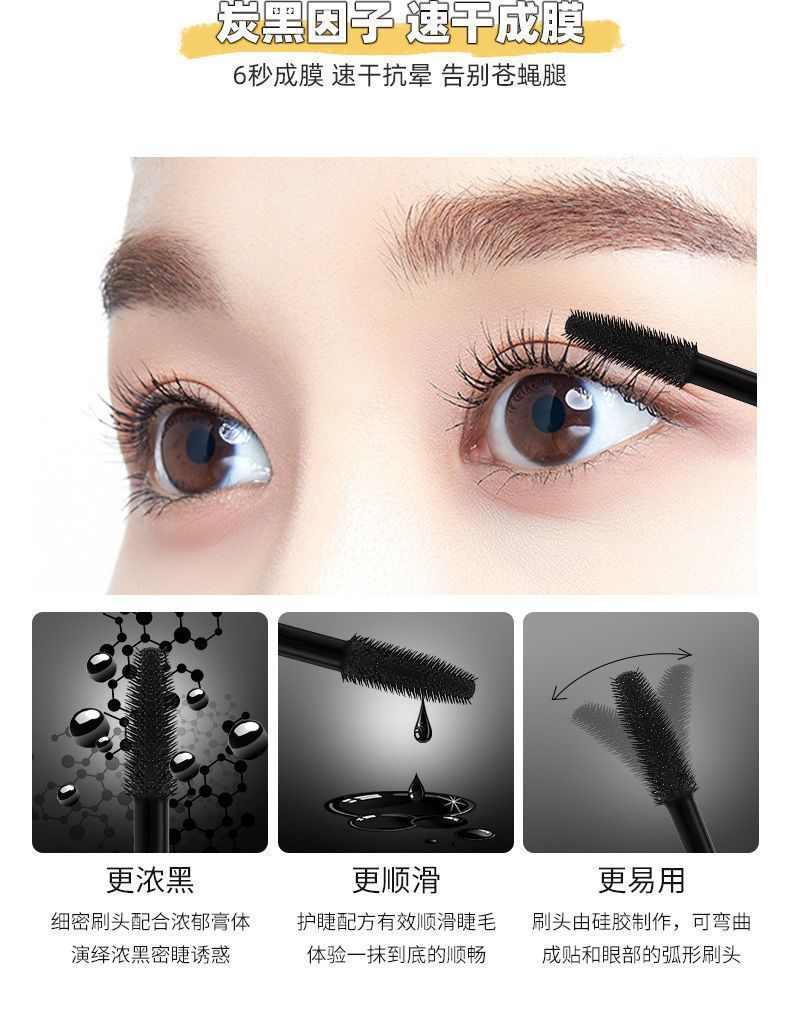 Тушь для ресниц Lilanfei длинная, густая, подкручивающаяся, водостойкая, долговечная, не размазывается, имеет большую головку щеточки, быстро сохнет и зашифрована.