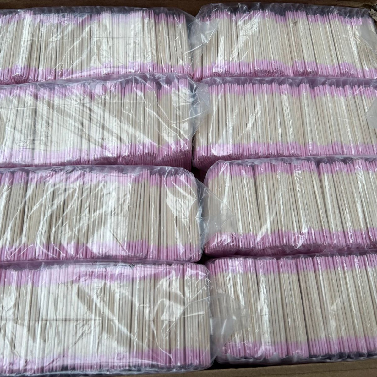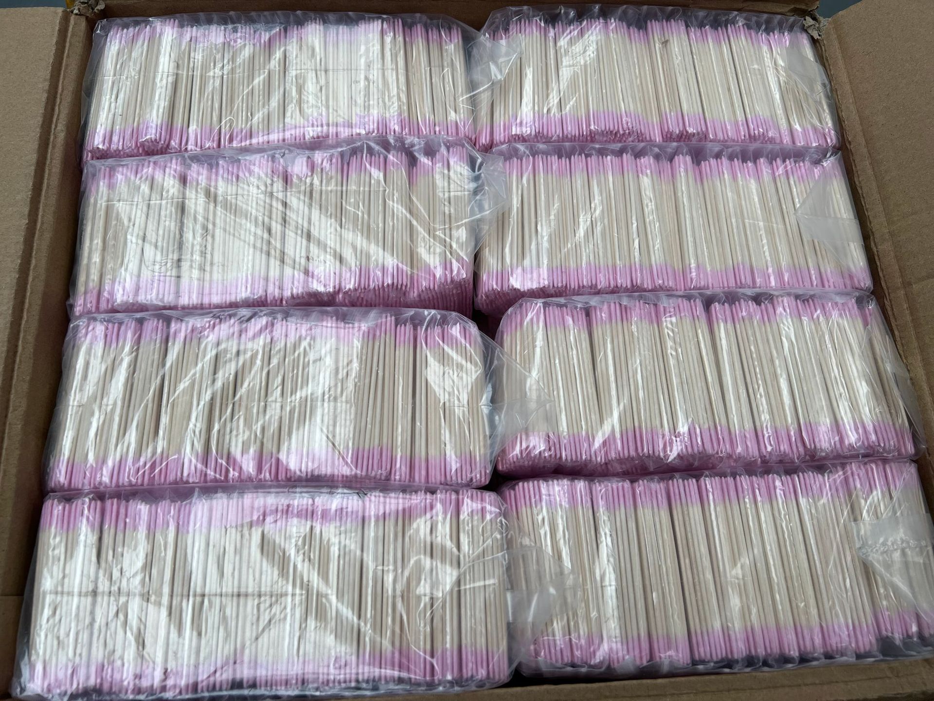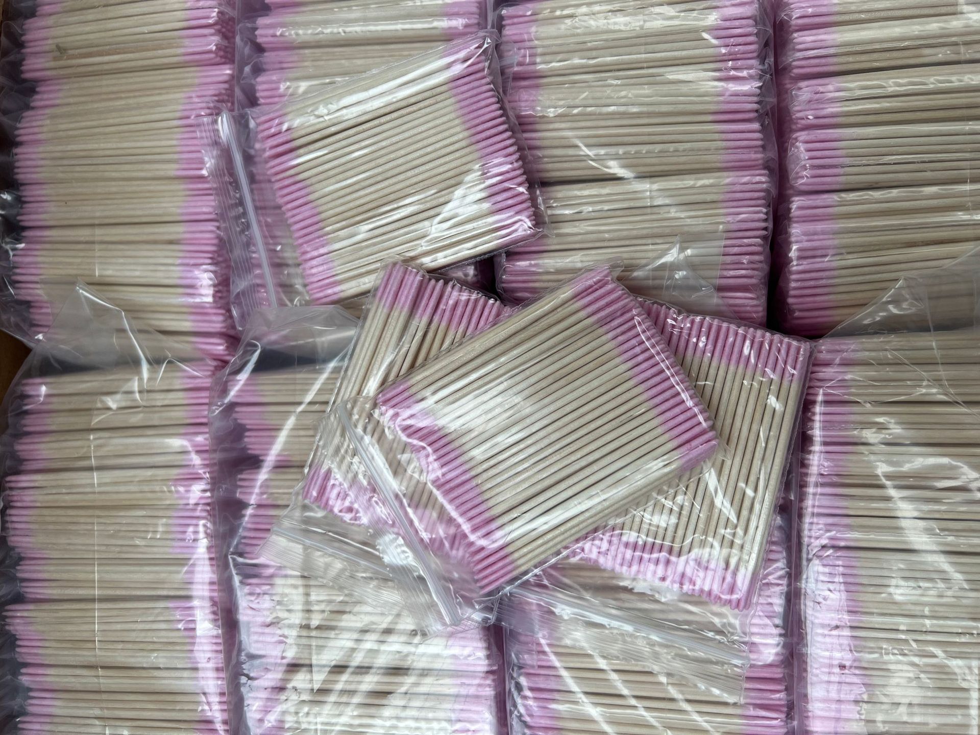Ватный тампон розового цвета с двойным кончиком длиной 7 см.