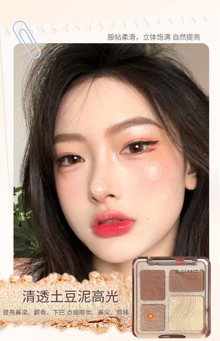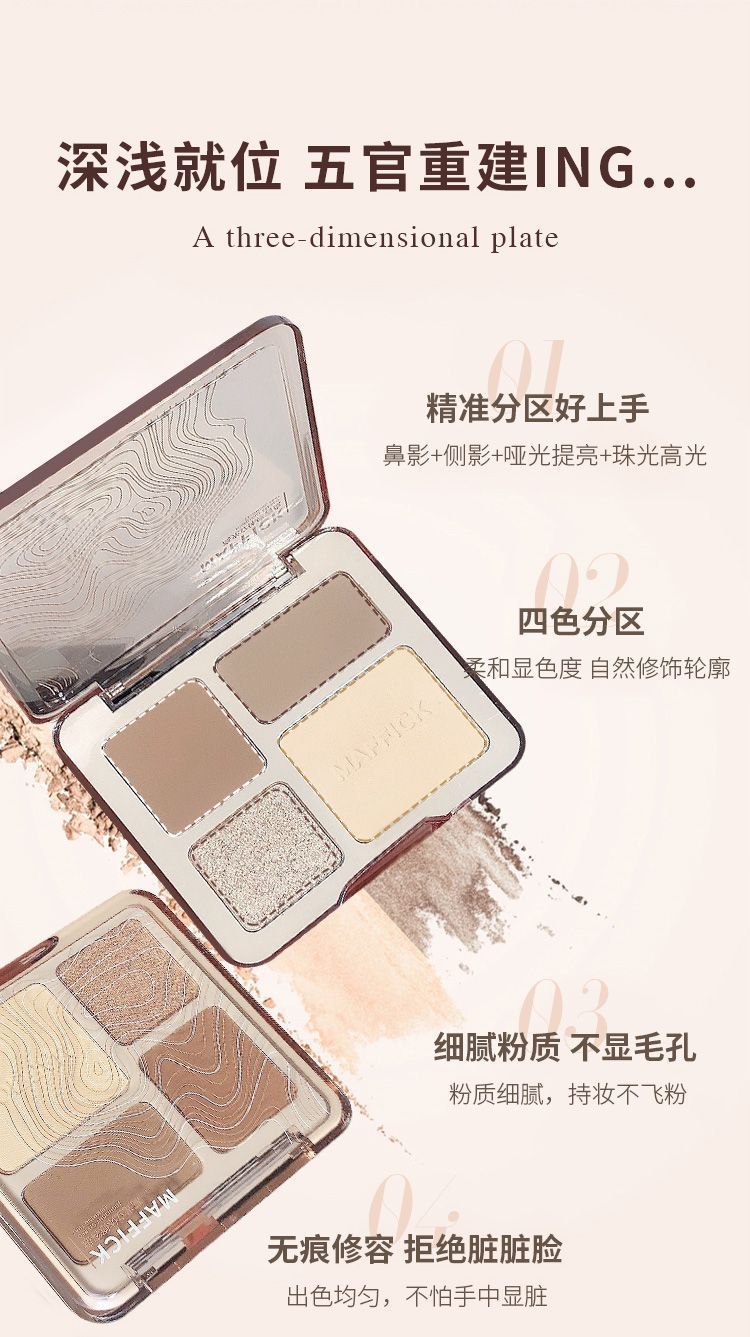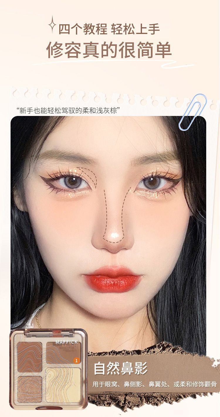 Чэн Шиан рекомендует четырехцветную палитру для контуринга, матовую глянцевую стереопалитру, тени для носа, меняющие и осветляющие студенческие тени и палитру теней для боковых глаз.