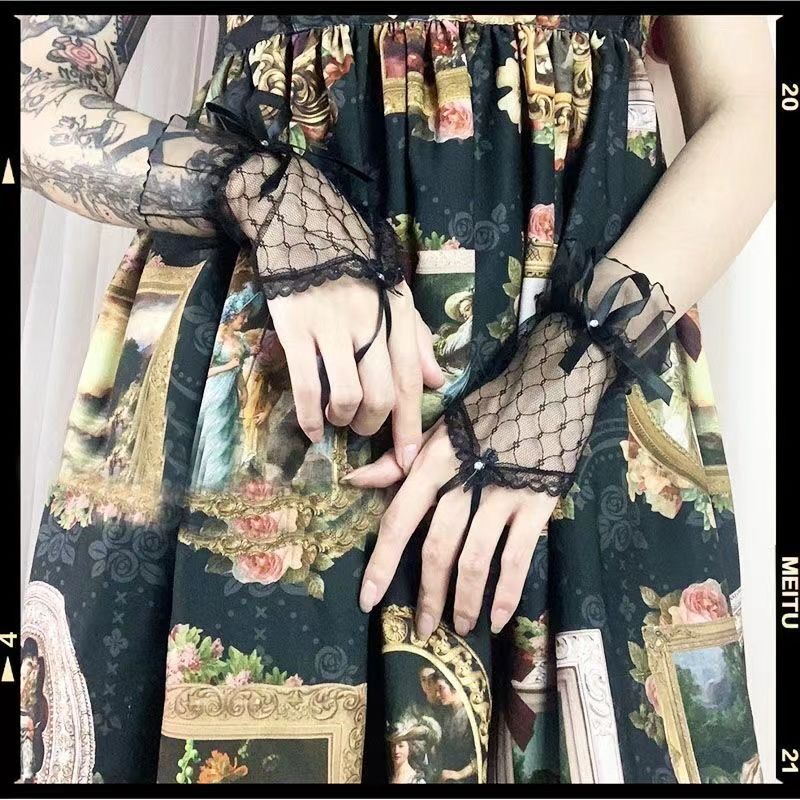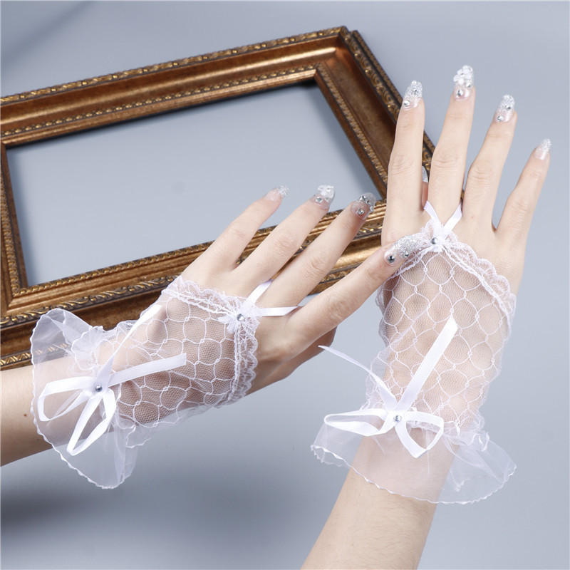 Кружевные перчатки без пальцев для женщин, невесты, свадьбы, Хэллоуина, Лолиты, сетчатого банта, танцев, сексуального украшения.