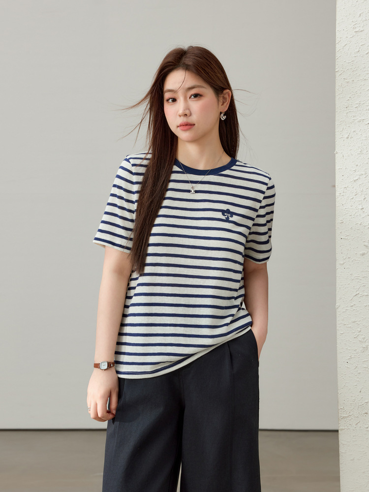 [Звездная ночь, морской бриз] Love Summer Style, полосатая футболка с круглым вырезом, самая подходящая для сочетания, Slim Show, женская летняя одежда больших размеров, новый стиль