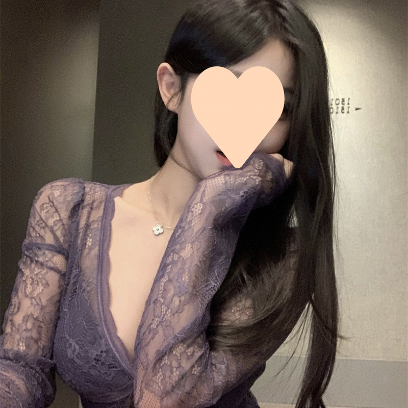 150kg Большие размеры, слегка толстая фиолетовая рубашка с длинным рукавом и воротником, кружевная нижняя рубашка, сексуальный красивый тонкий короткий топ Pure Desire