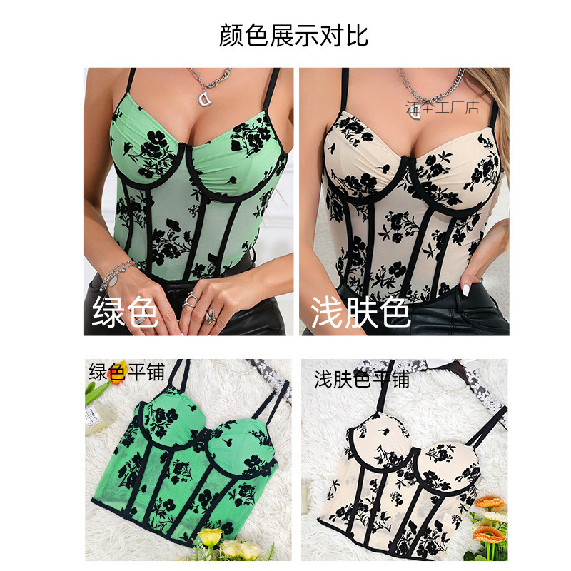 Новый сетчатый прозрачный корсет Meirenxi, замшевый бюстгальтер со стальными кольцами и вышивкой, сексуальный сексуальный камзол