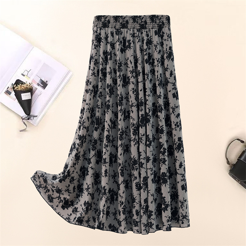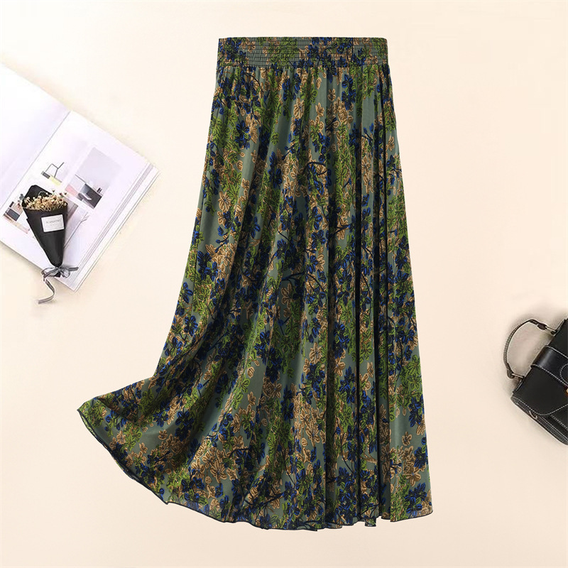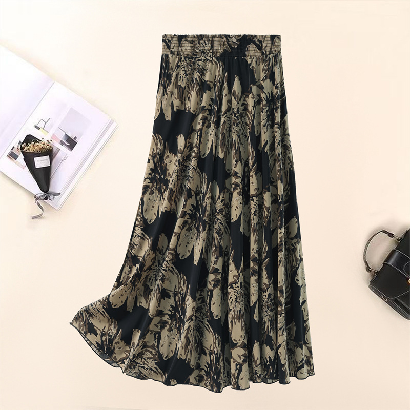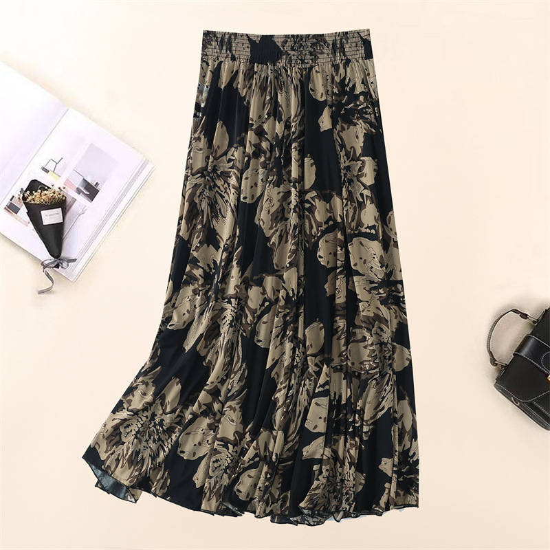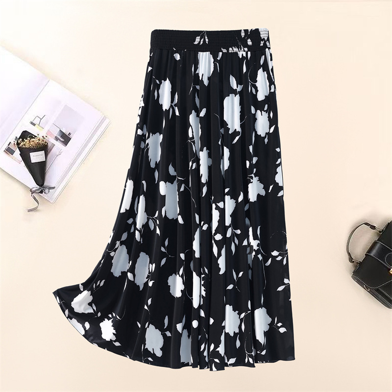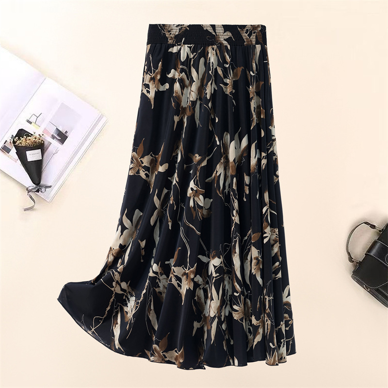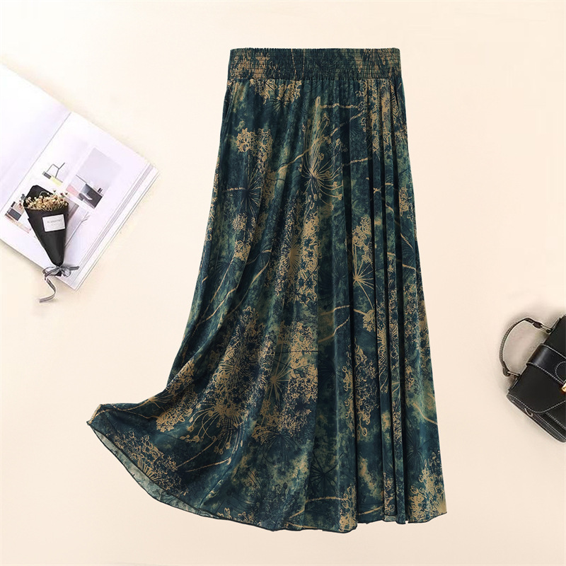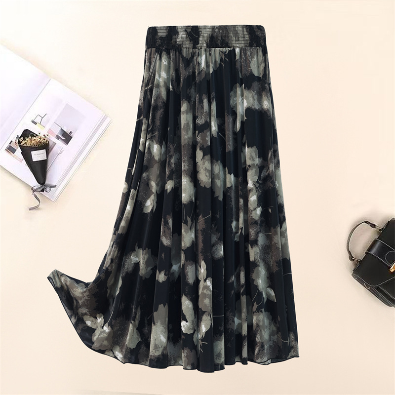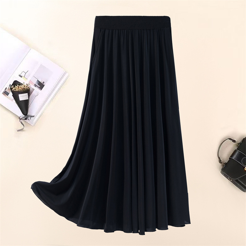 Летняя юбка для женщин среднего и пожилого возраста, одежда для мам, эластичная талия, длинная юбка из ледяного шелка, брюки с эластичным карманом и высокой талией, юбка 83 см