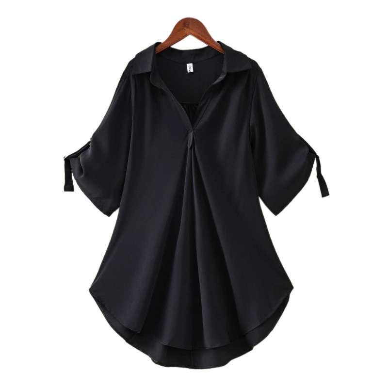 Женская шифоновая рубашка средней длины с короткими рукавами, лето 2025, новинка, большой размер, свободная талия, утягивающая шифоновая рубашка, топ для женщин