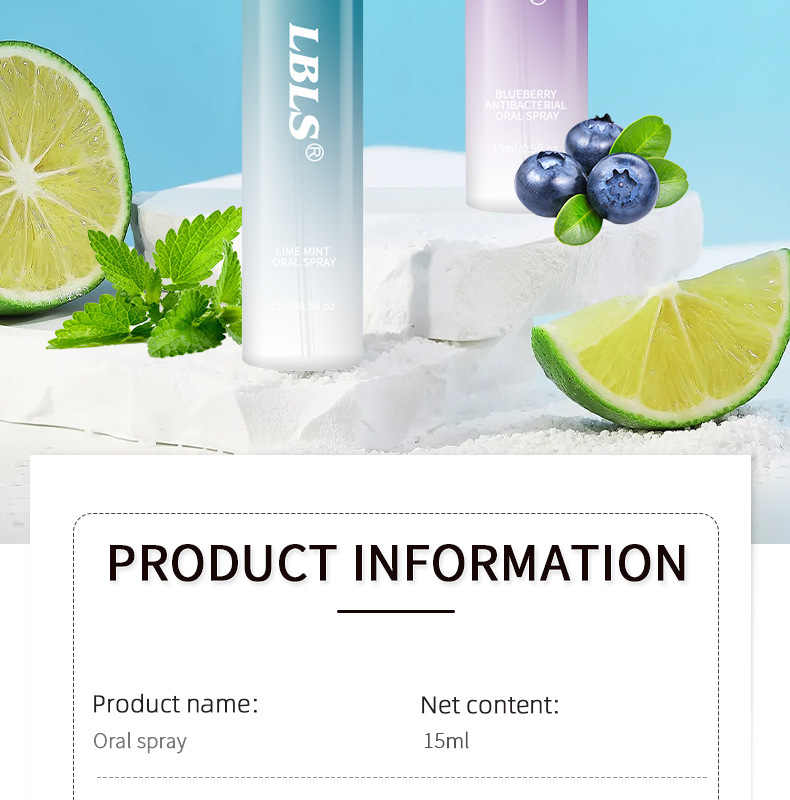 Оральный спрей с фруктовым вкусом лайма, мяты и черники LBLS, длительный аромат, свежее дыхание, оптом.