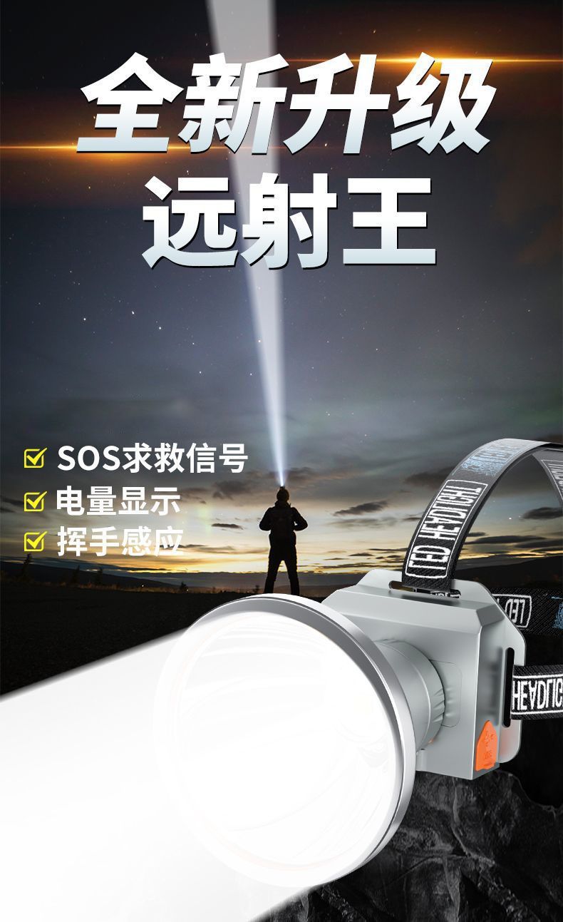 Супер яркая светодиодная фара, мощный фонарик, перезаряжаемое освещение, крепящийся на голову, сверхдлительный датчик срока службы батареи, светильник для ночной рыбалки