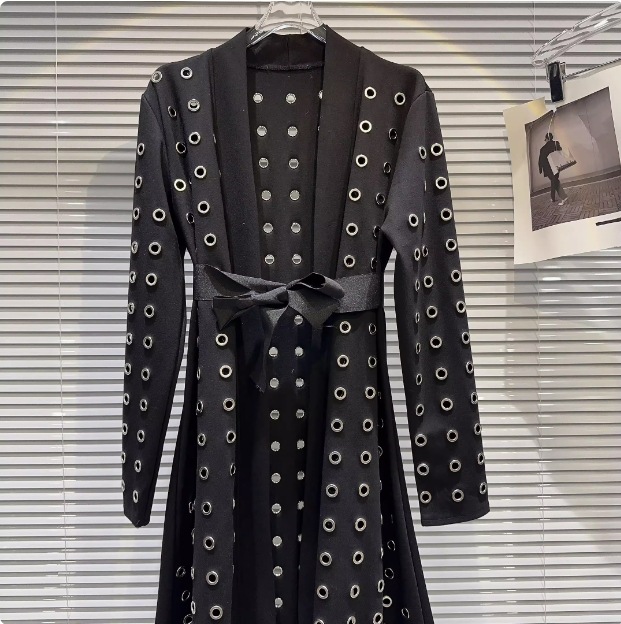 Кросс-бордерная классическая весенняя новинка 2025 года: европейский и американский трендовый ветровка с длинным рукавом, дизайн из тяжелого металла и кружева.