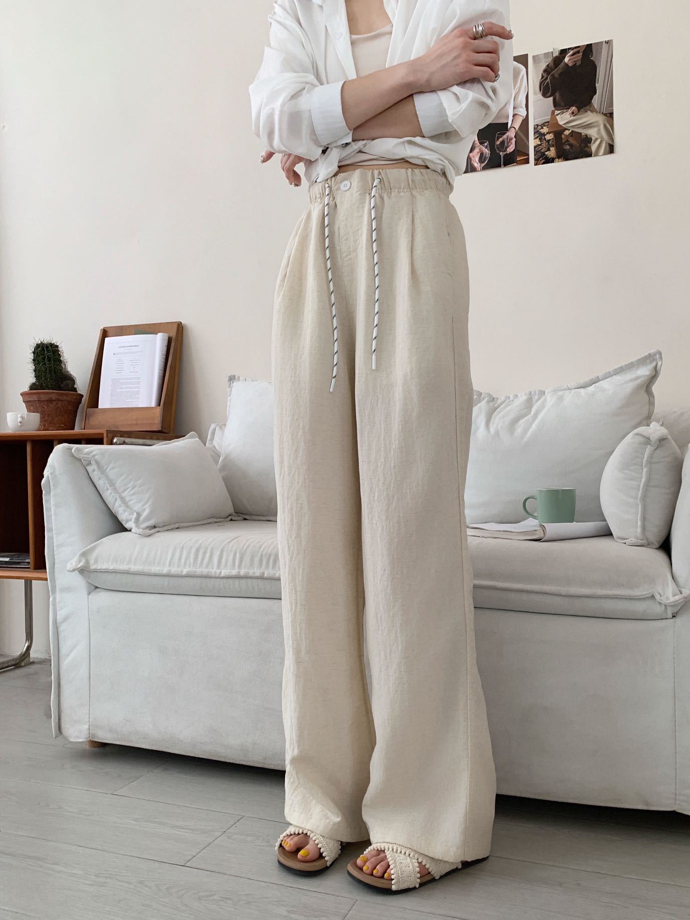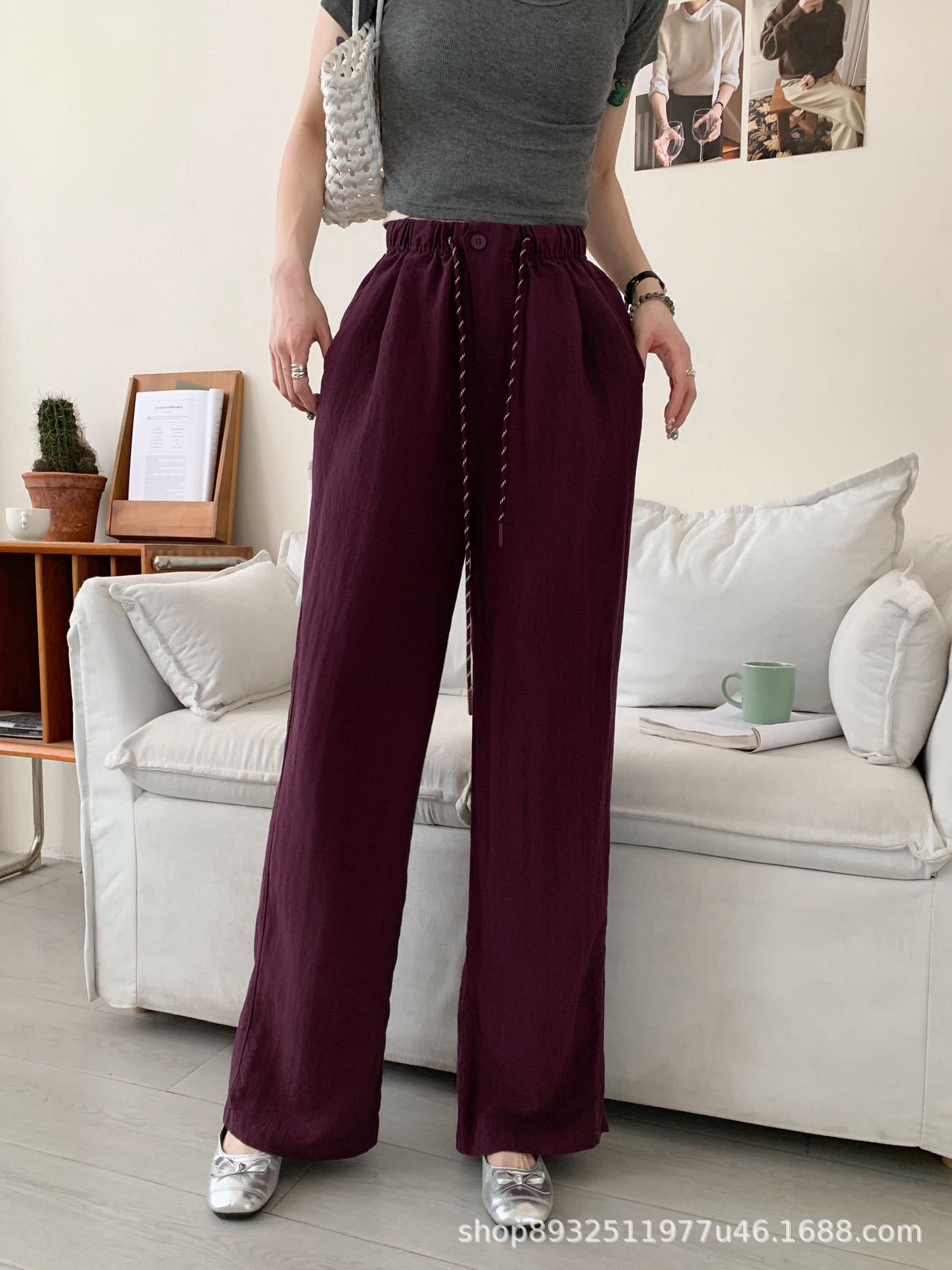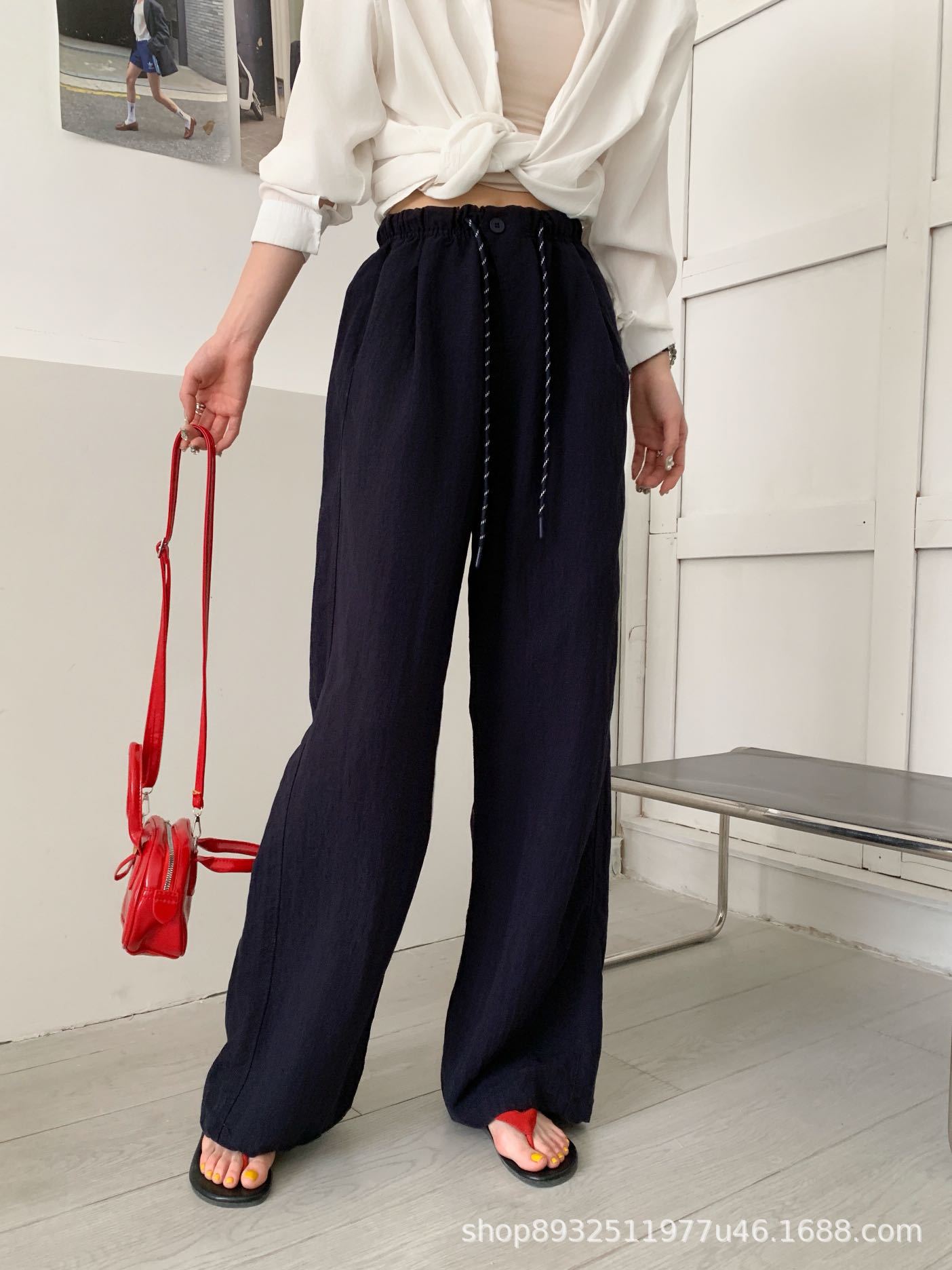 2025 Корейские льняные брюки из лиоцелла, прямые брюки, универсальные, стройнящие, однотонные, высококачественные, с драпировкой, в стиле ленивого комфорта