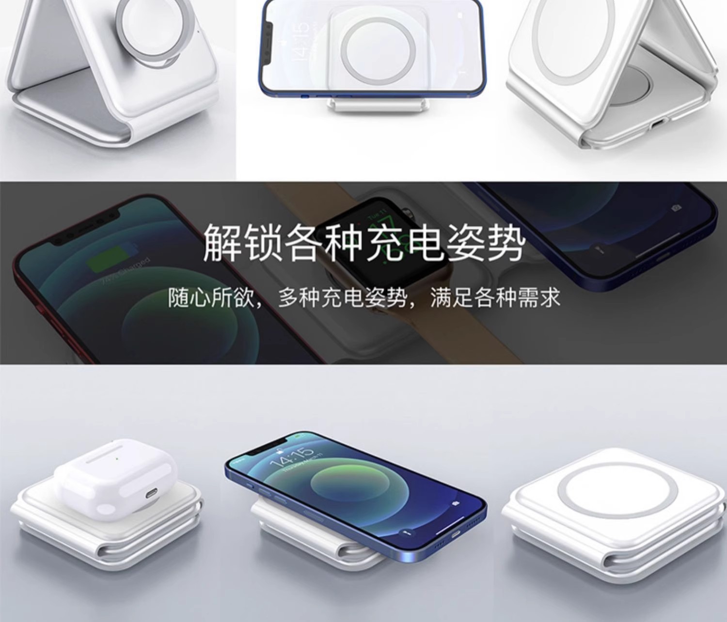 Трансграничное беспроводное зарядное устройство «три в одном», настольная складная магнитная беспроводная зарядка, подходящая для мобильных телефонов Apple, наушников и часов